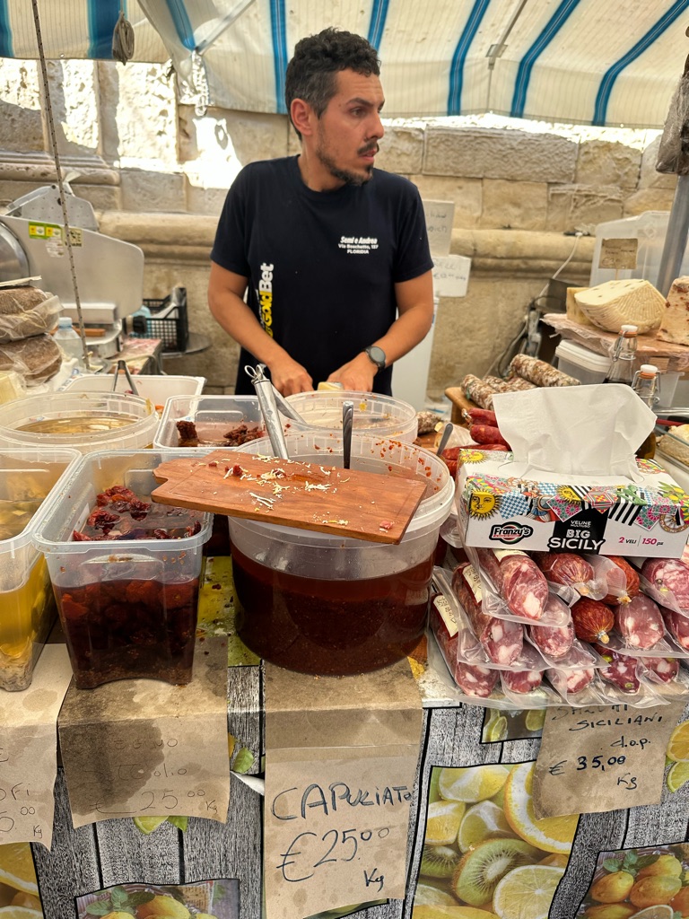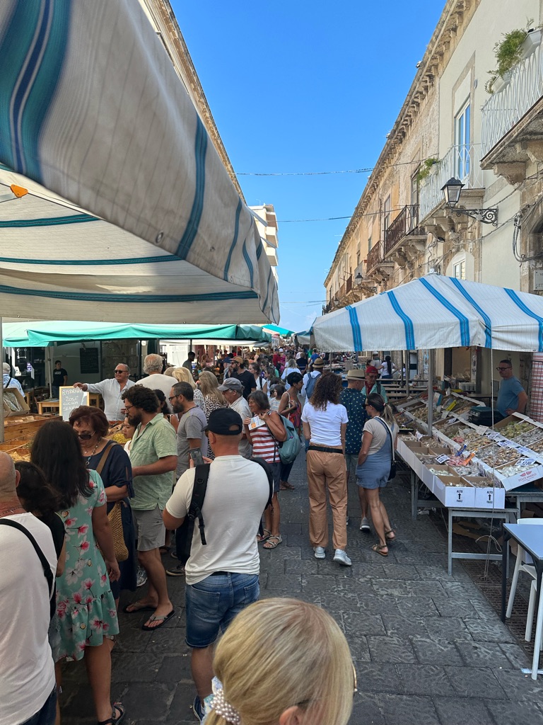 Typical Sicilian market in Ortigia, old town in the Greek center of Siricusa