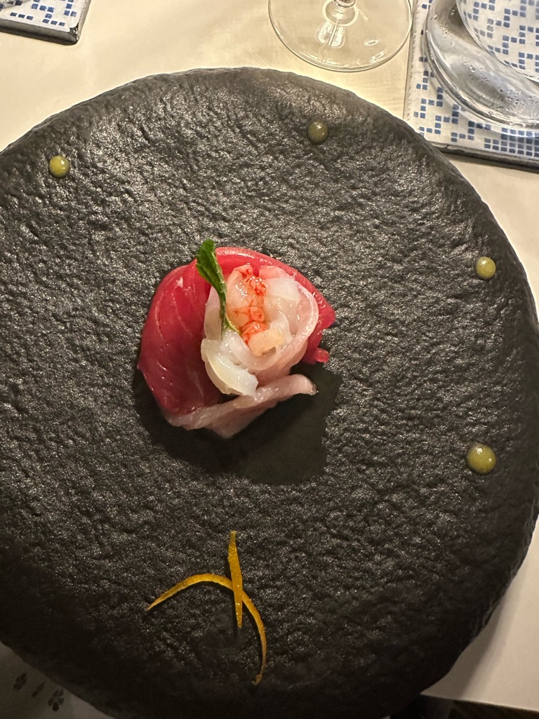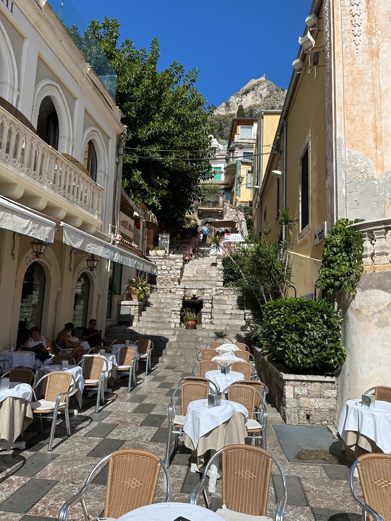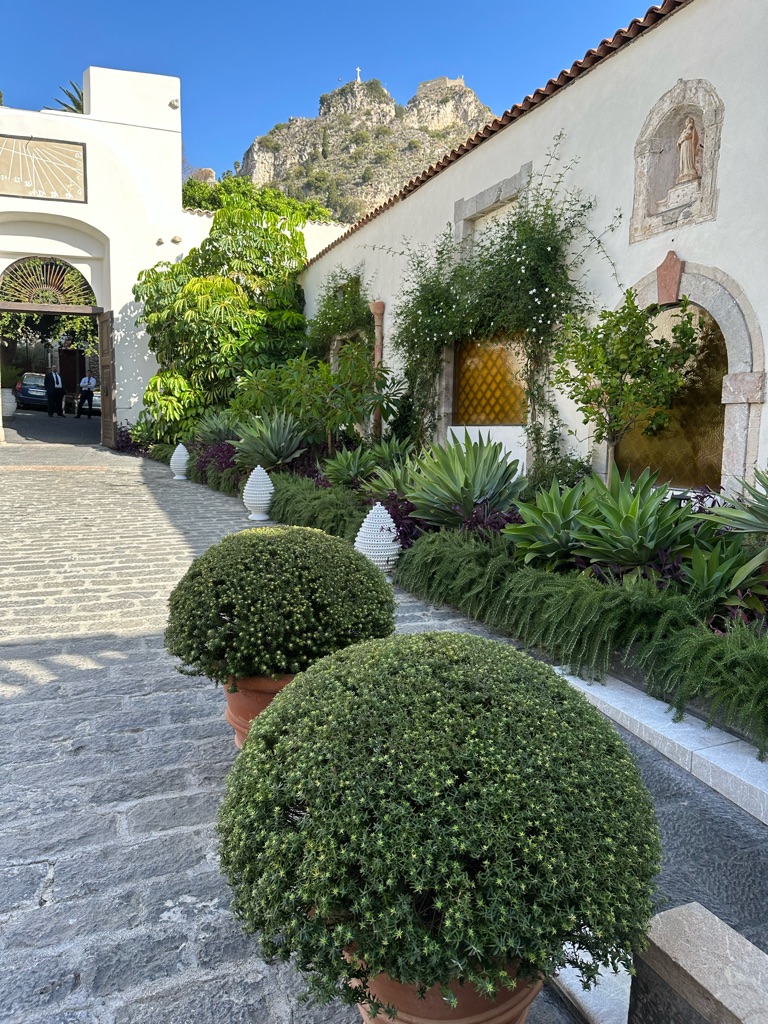 The Four Seasons Taormina, aka The Whote Lotus Hotel. Delicious dinner at Tischi Toschi, a tiny restaurant near the hotel, then drinks in the beautiful courtyard