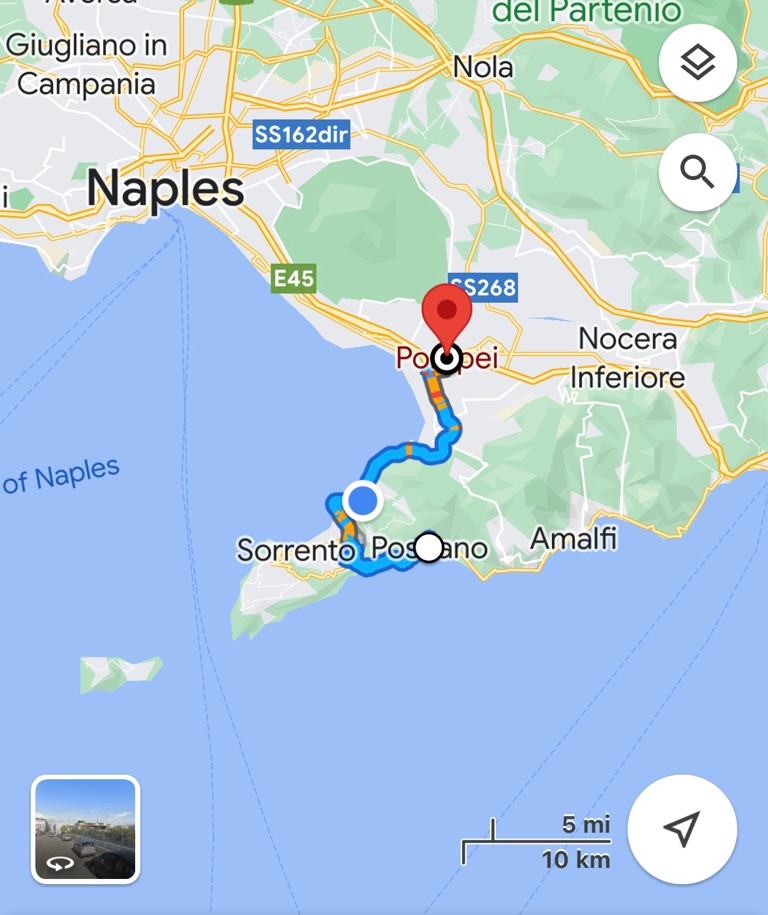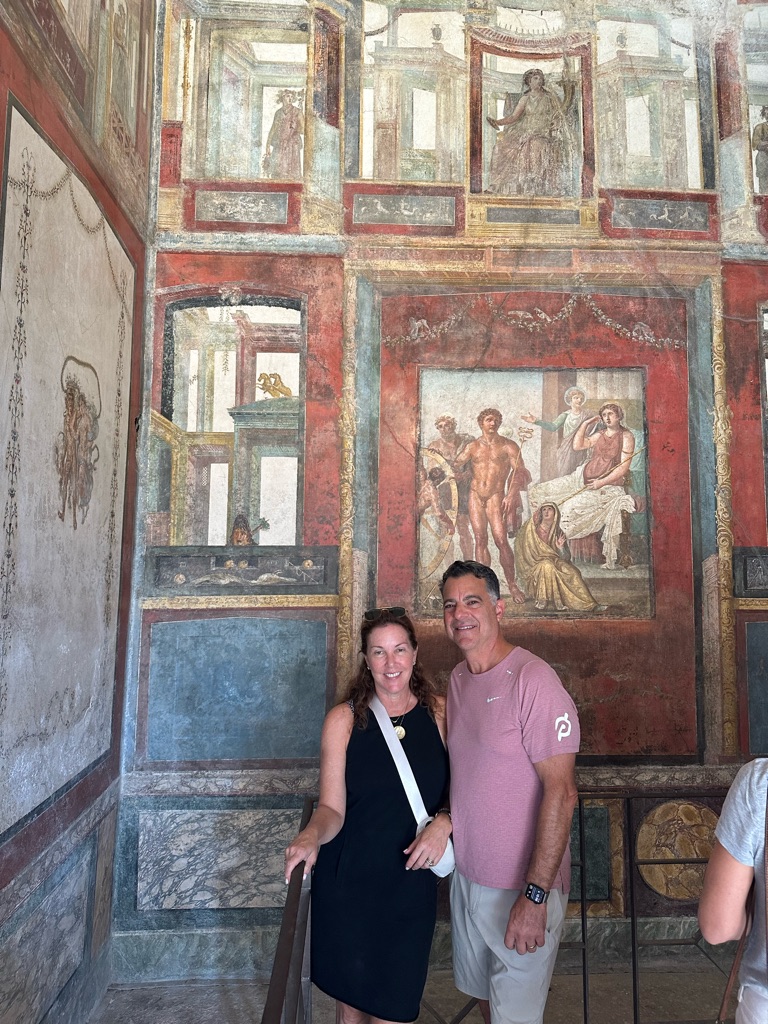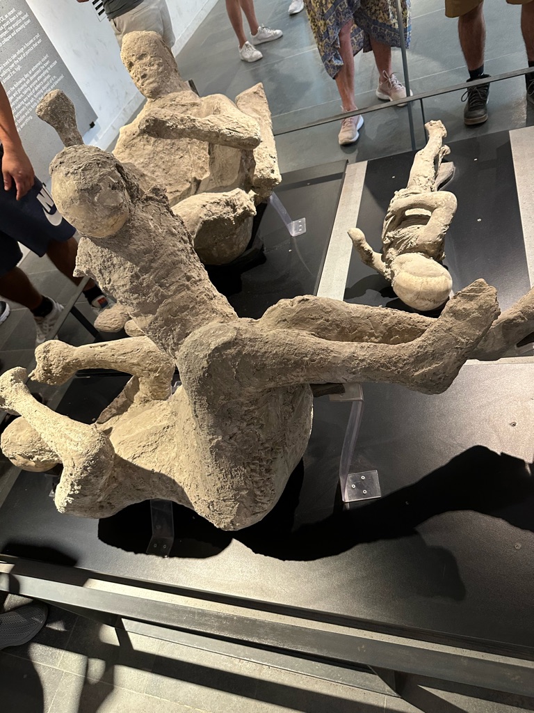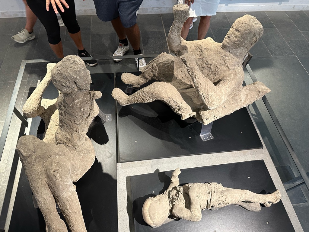Just an hou away are the ruins of an amazing Roman city which was covered in ash by Vesuvius in 79 AD. Lava did not reach the city, and the people died of asphyxiation.