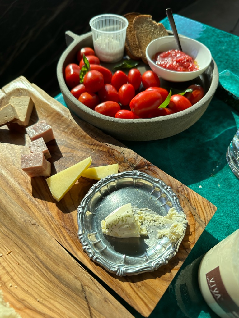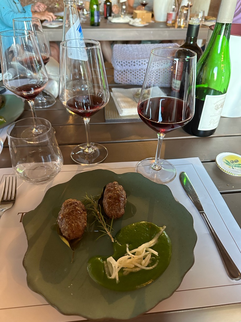 Local sparkling Spumante with all local fruits and nuts. Simple toasted pistachios, prickly pear, beautiful strawberries presented by and agricultural consultant