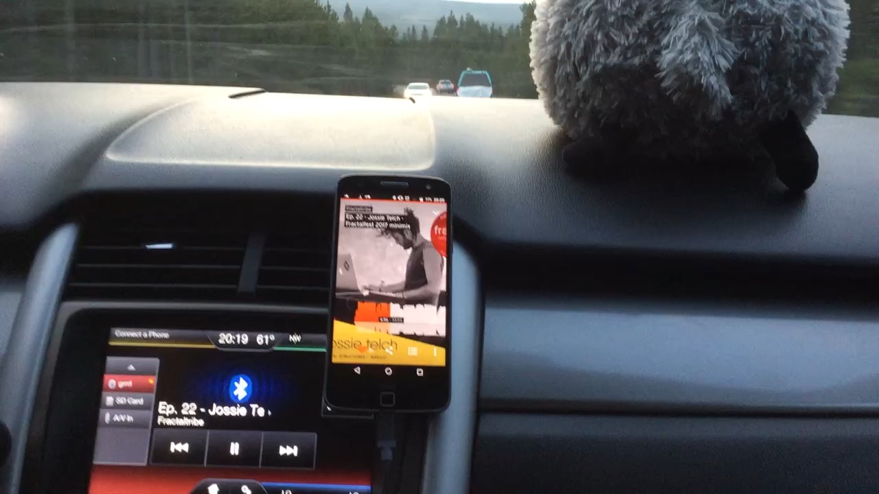Simon and Elph through the windshield under shadows: