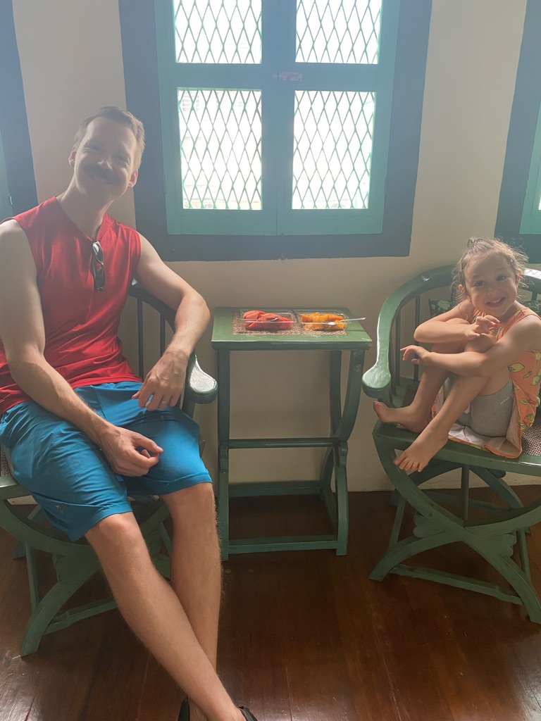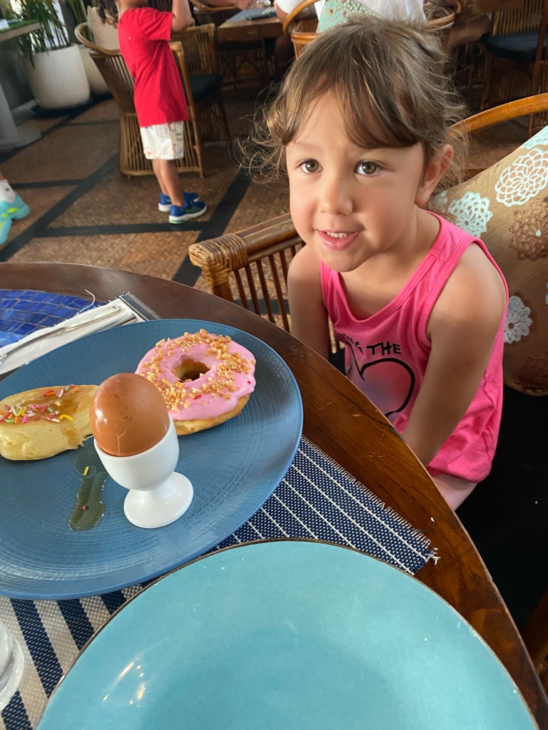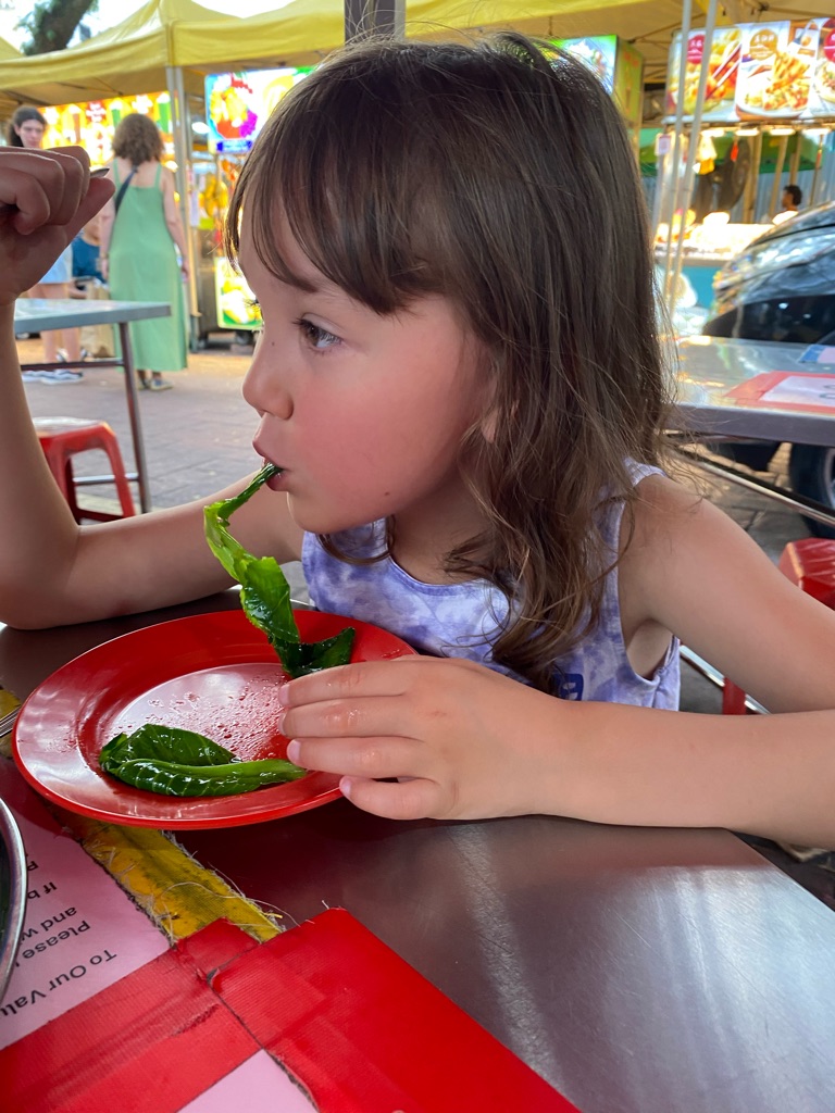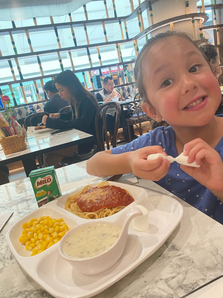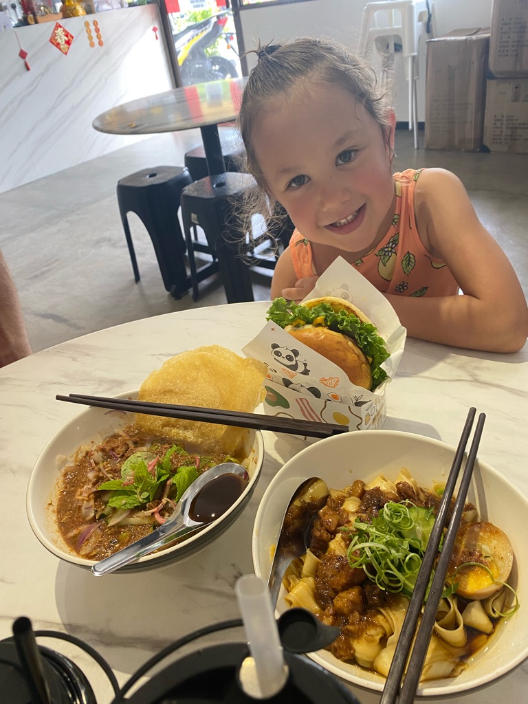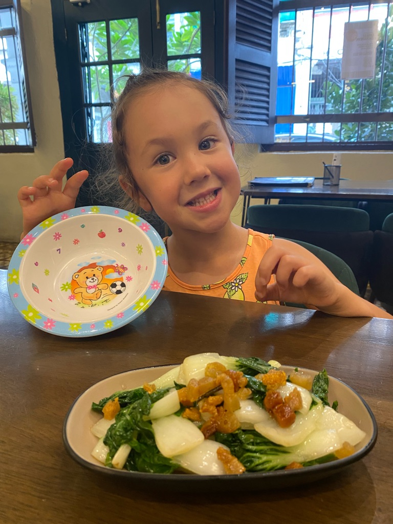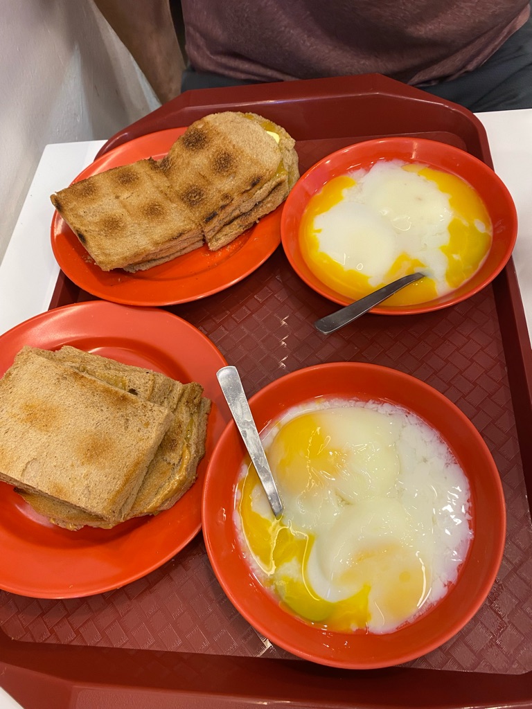 We were all starving so we decided to try Singapore’s most popular breakfast called Kaya toast. It’s very thin toast with kaya (coconut jam) and butter. It’s served with soft boiled eggs that you add soy sauce to. It sounds super strange and we were a little weary to try it but honestly it was delicious, even Lydia loved it!