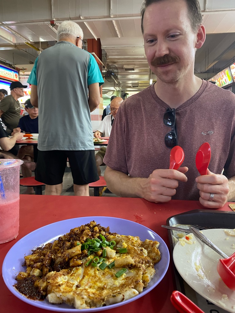 We were all starting to get a bit crabby and knew it was time for more food so we stopped in Chinatown. We went to one of their famous Hawker Centres (a place where all the street food vendors come together). We had 3 foods on our list that we wanted to try and ended up having them all.