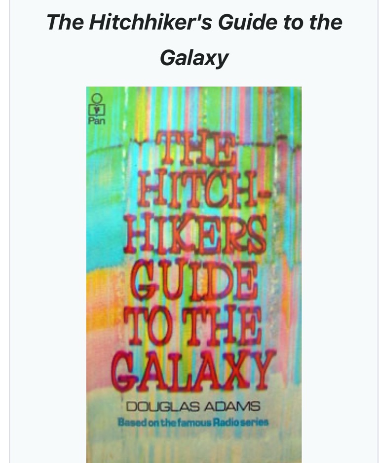 "Guida galattica per autostoppisti", strumento di sopravvivenza di base per rispondere alla domanda fondamentale "Qual'è il senso della vita?"