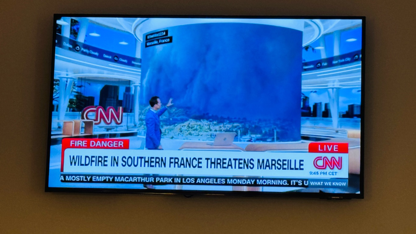 Paris Olympic Cauldron in flight viewed from hotel lounge