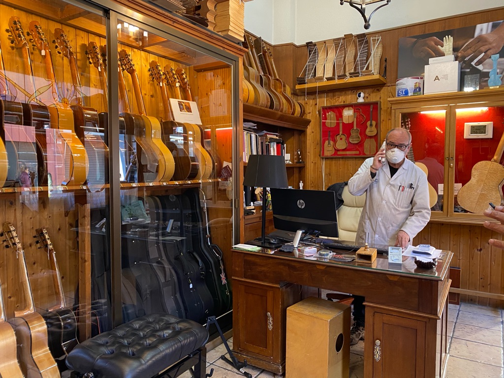 The city of Granada is also know for its world famous flamenco guitars. There are numerous luthiers throughout the city creating some of the most beautiful and sought after guitars. According to some of the locals, the best guitars are made by luthier Daniel Gil De Avalle. Although his tiny shop carries an assortment of string instruments, including some reasonably priced guitars, he only makes about fifteen handcrafted guitars a year; all advance orders with at least a year wait for delivery. When we visited his shop, he said he could make me a very basic one for about €8,000 ($8,950) but the two on display waiting for delivery, were nearly €20,000 — too rich for my level of playing. The real exciting piece was getting to see his cramped workshop and getting to admire his custom handmade the guitars. For the nonprofessional guitarist, these were simply collectible works of art.