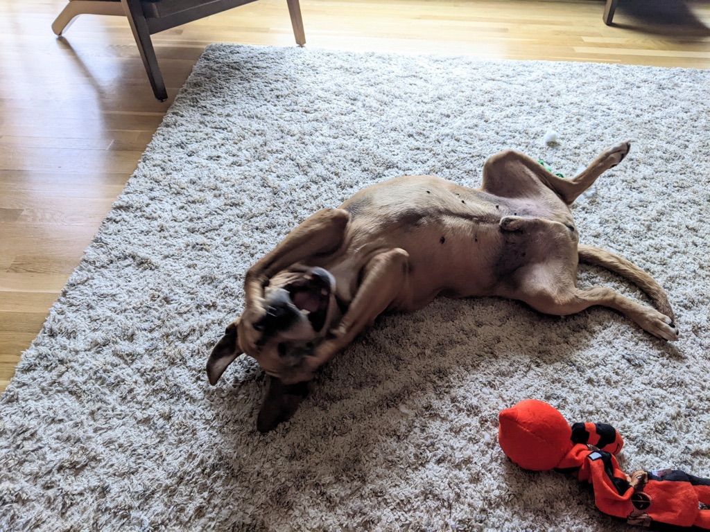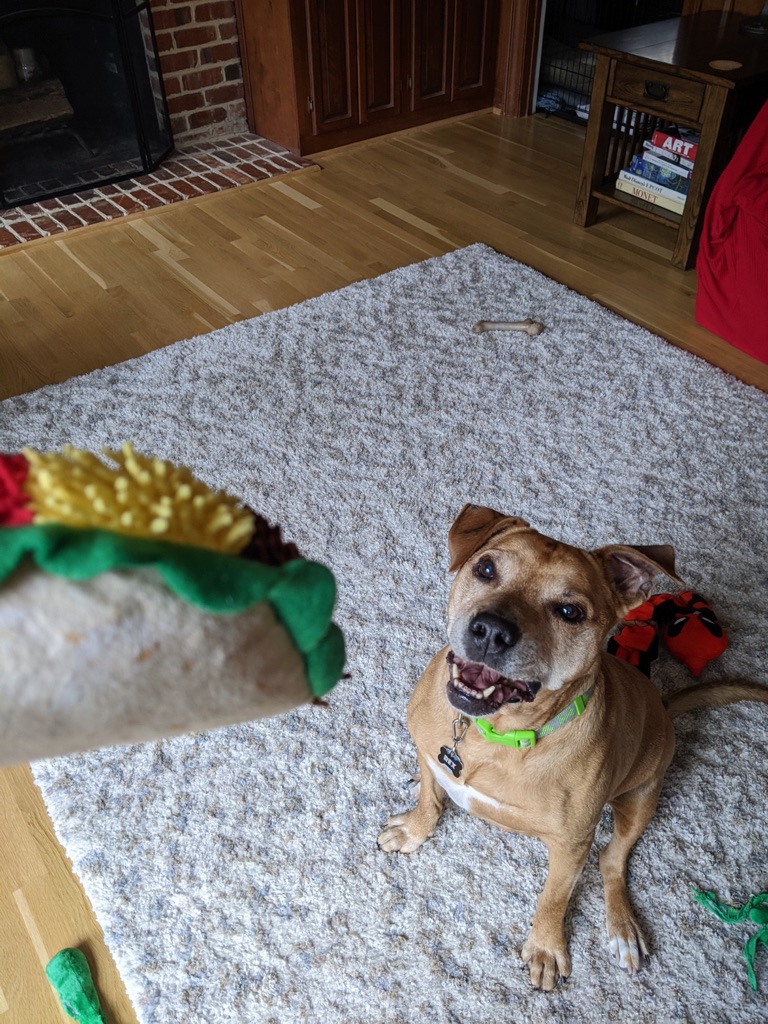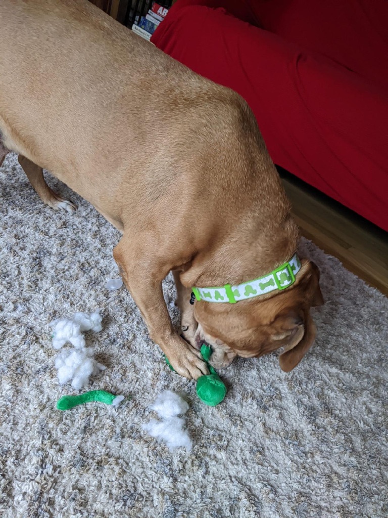 Meanwhile, Rex was happy at home with a new toy to destroy!