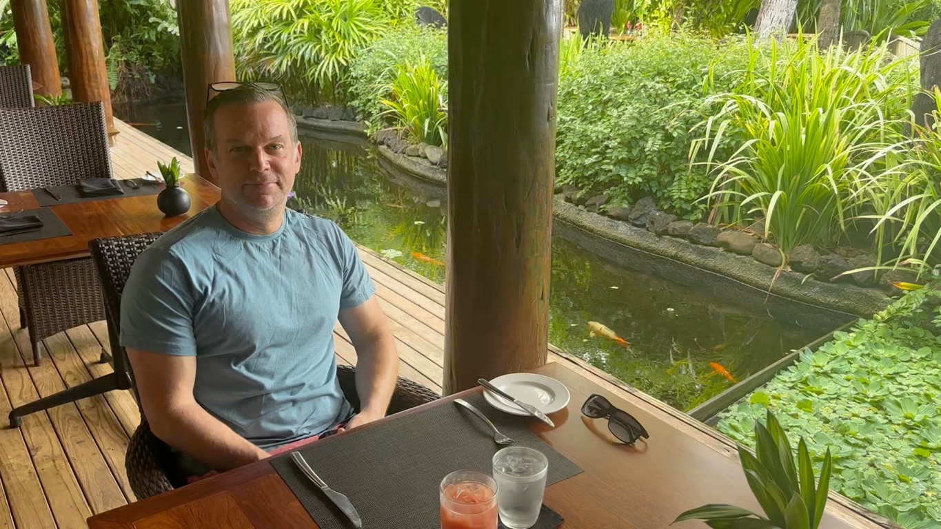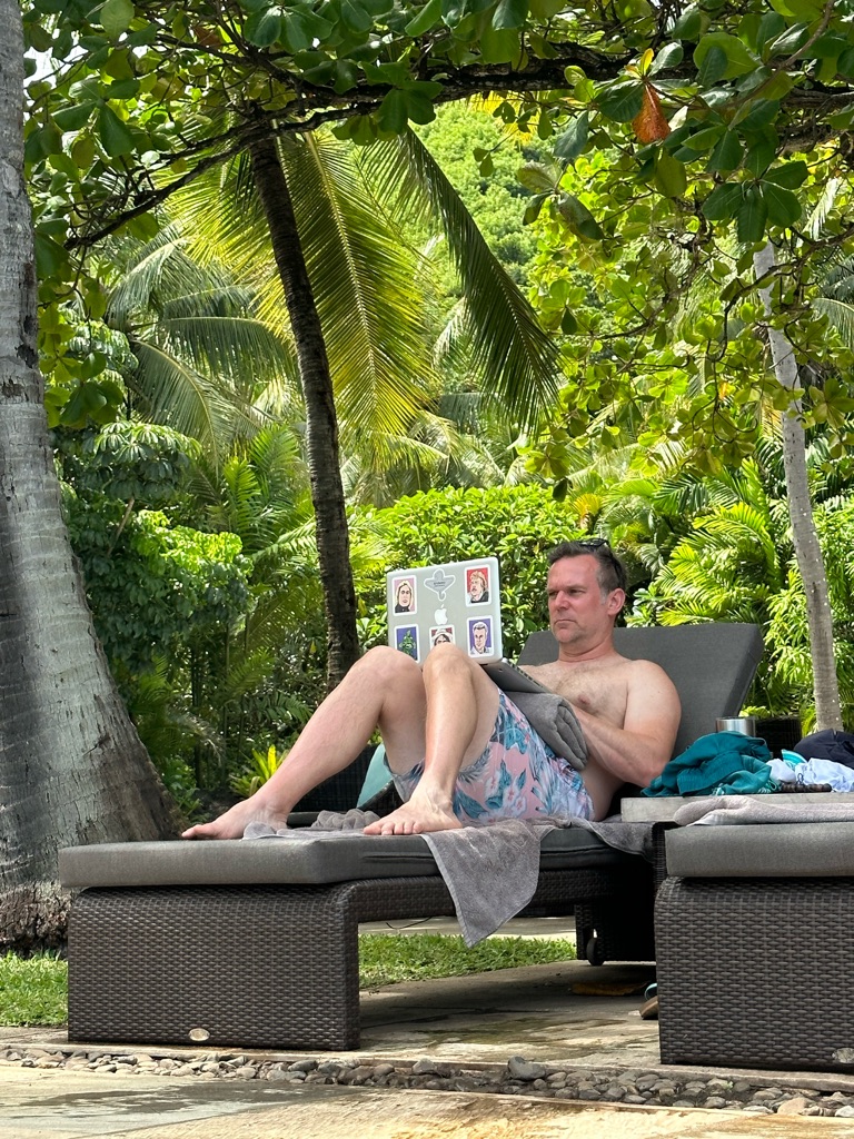 We were up pretty early - Rob went to the lobby around 6:00 am to work on his baseball draft. I joined him at 7:00 and texted with Colin (they are 5 hours ahead)