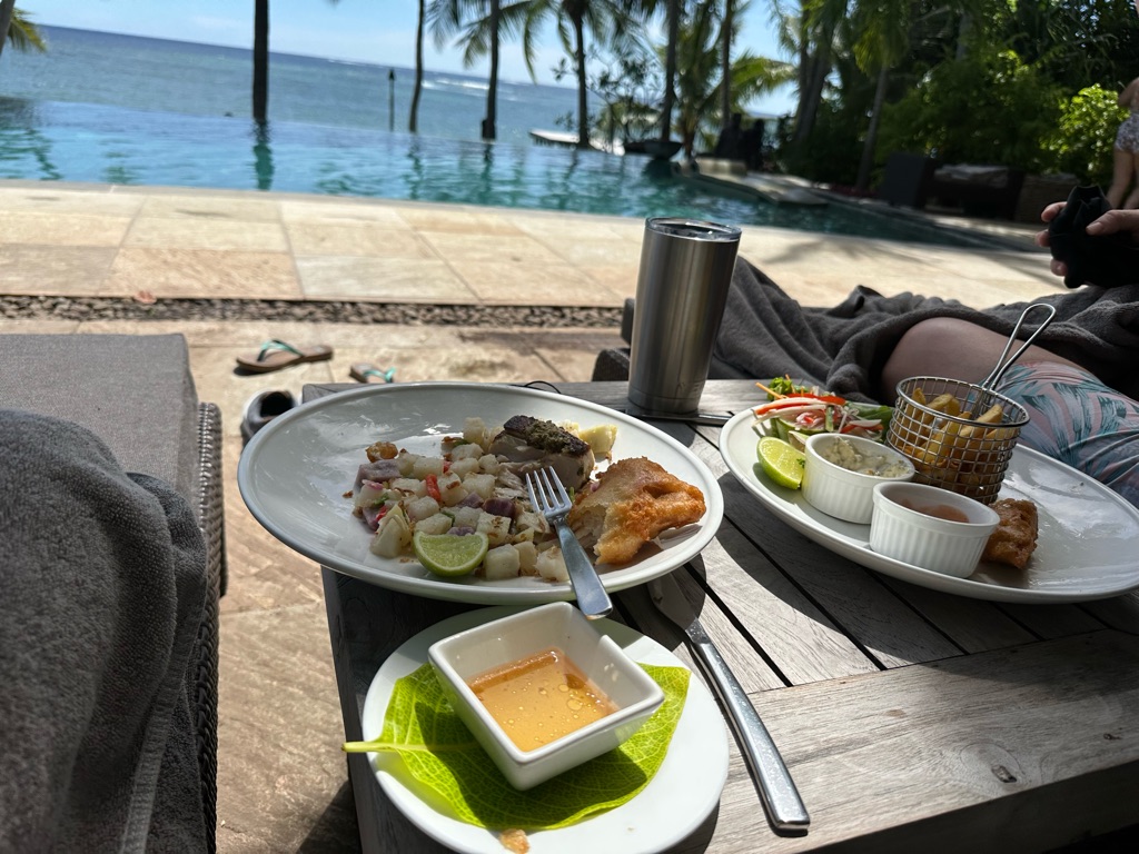 Breakfast was delicious- we went swimming afterwards in the infinity pool. Then we went snorkeling at 11:00 - we saw a shark!