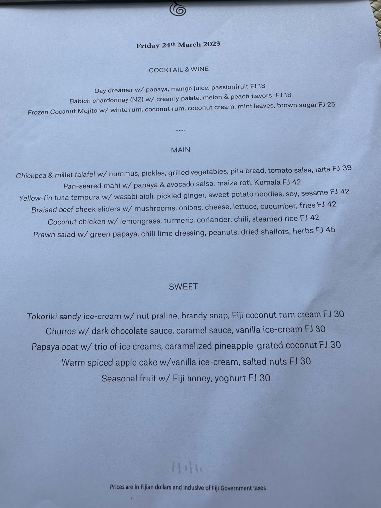 We took part in the Kava ceremony at 9:30 pm. It was nice to be able to talk to the staff in a more intimate setting.