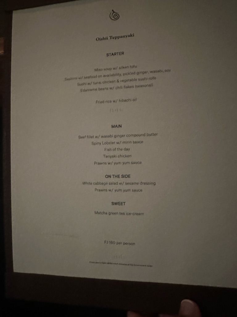 We had dinner at the Teppanyaki restaurant with 6 other guests - it was extremely hot but fun!