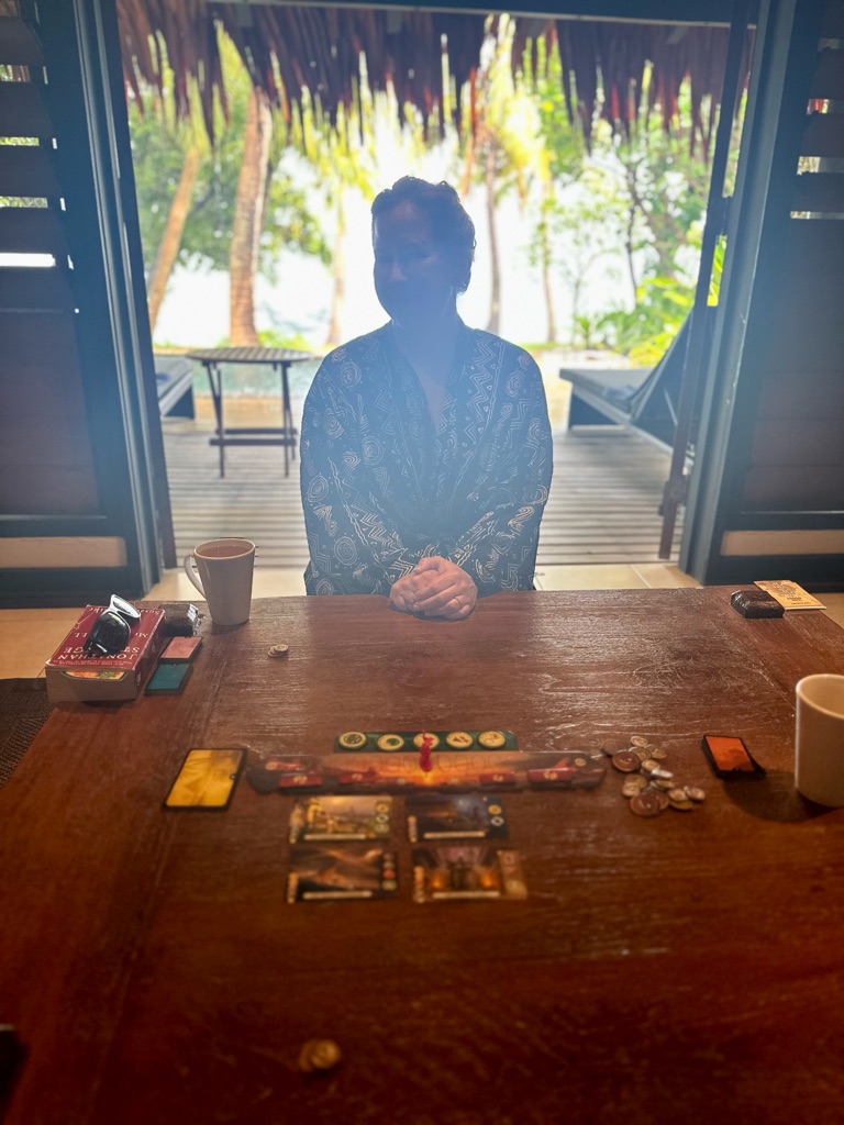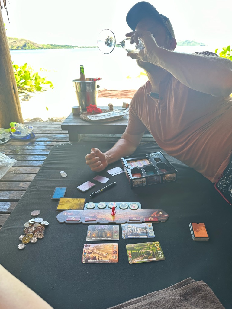 We played 7 Wonders Duel and Rob won … but the surroundings made the loss a little more bearable…