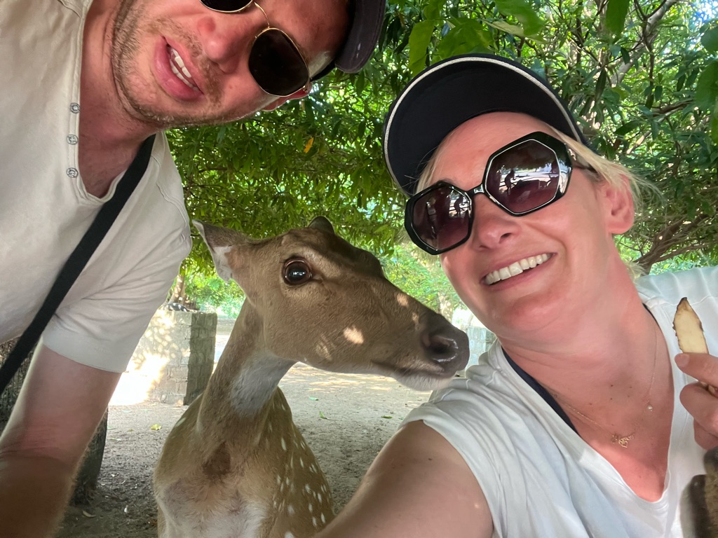 Puis on a profité de la piscine et cet après midi visite d un temple hindouiste et de la ville où on a eu la chance de croiser les daims mais aussi les vaches qui se baladent dans les rues.