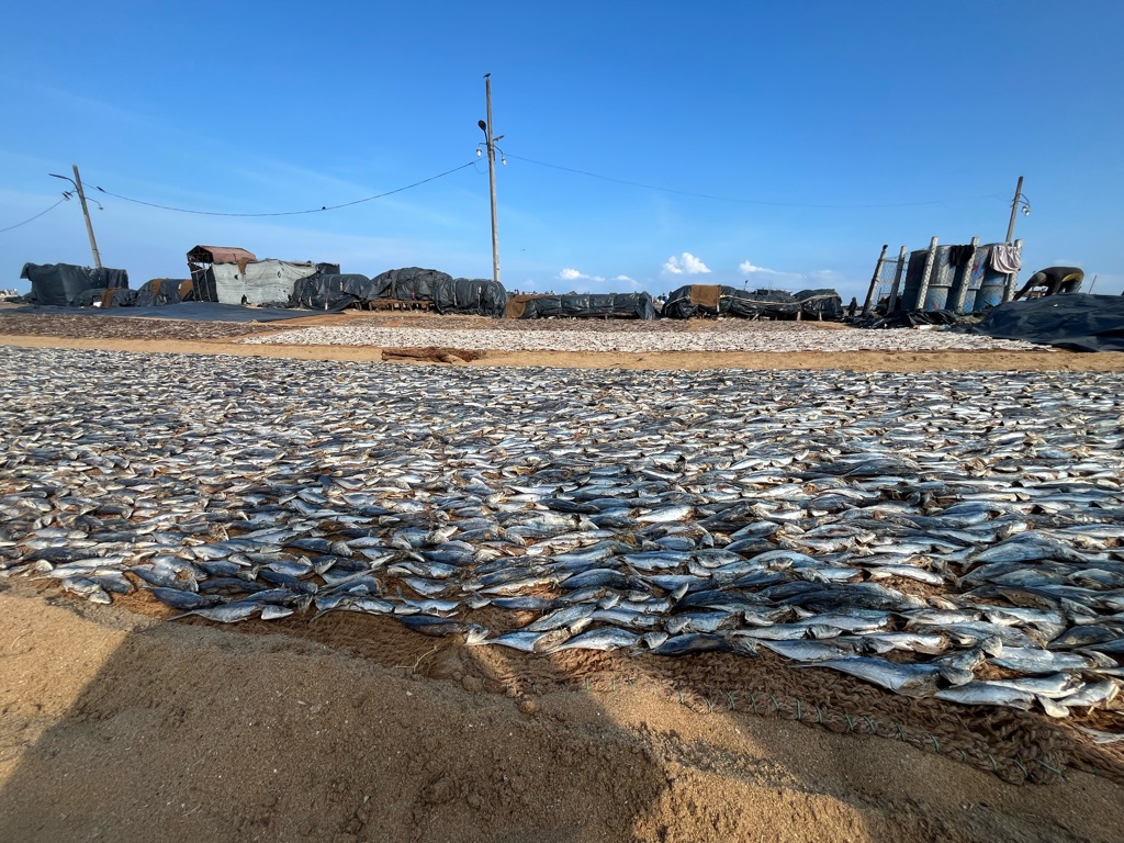 On a continué avec ensuite la visite du poisson séché et salé au bord de la mer!