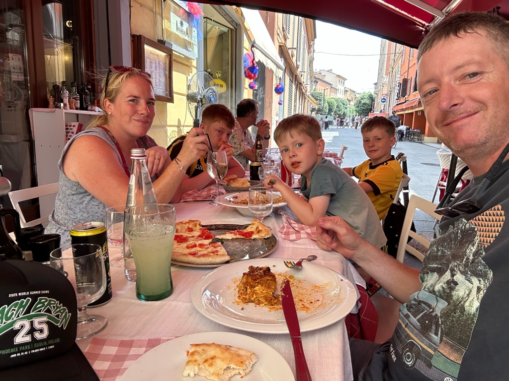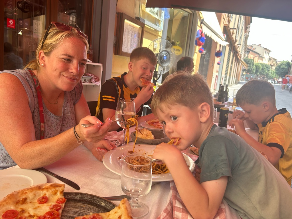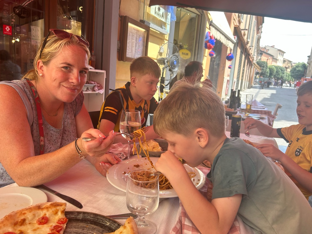 Lunch in Bologna! We had pizza as amazing spaghetti bolognese and lasagna!