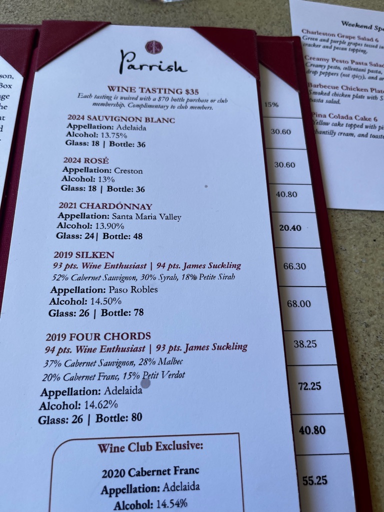 One final bottle of wine shared before heading back home to our Missy.