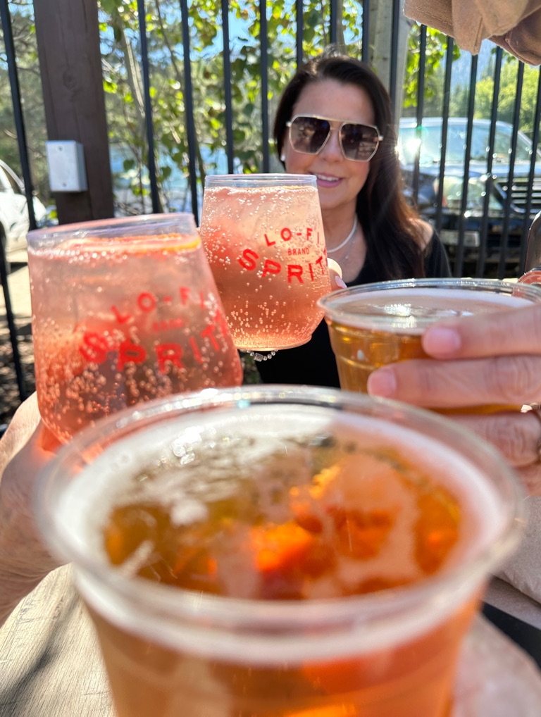 Everyone was hungry so we stopped for an awesome brunch in Reno that we found on the fly - Stonehouse Cafe. Great patio with beautiful flowers and our first mimosa together.