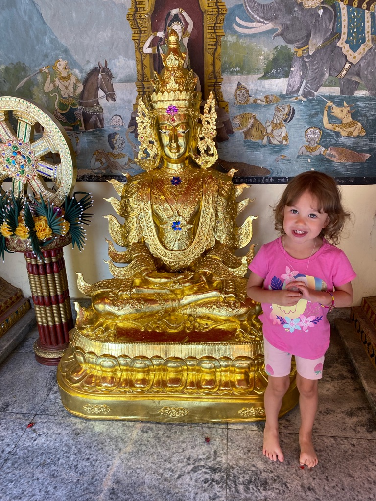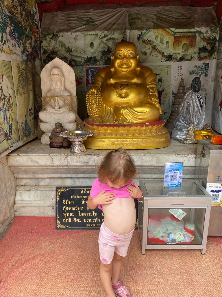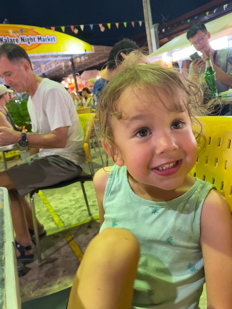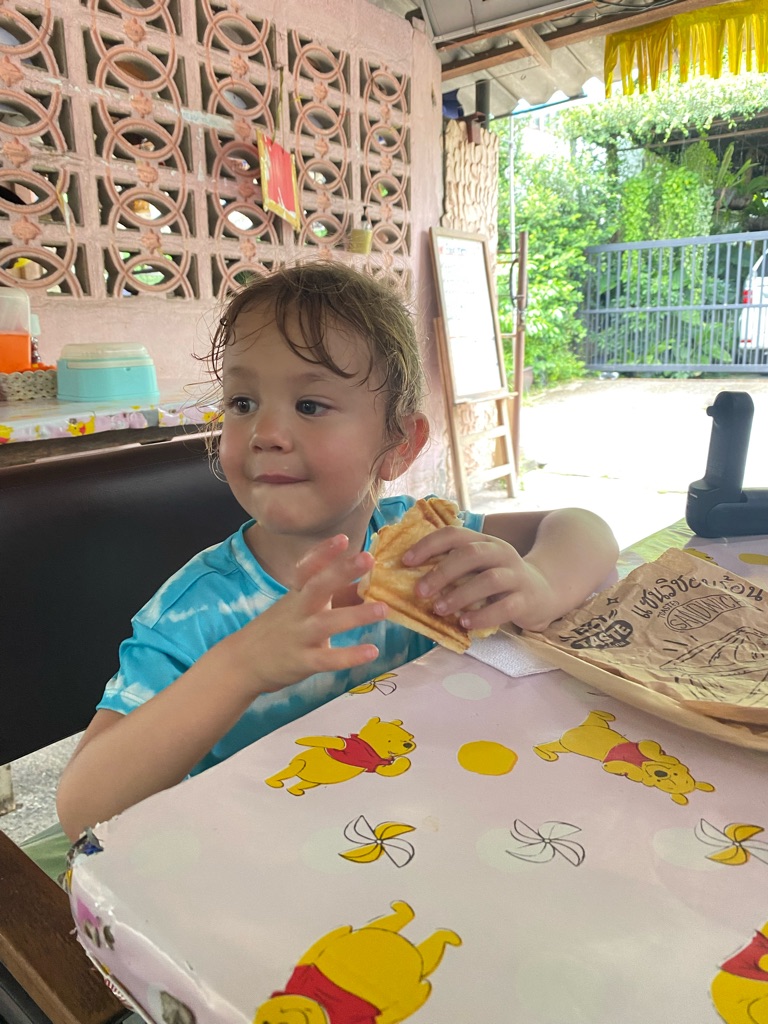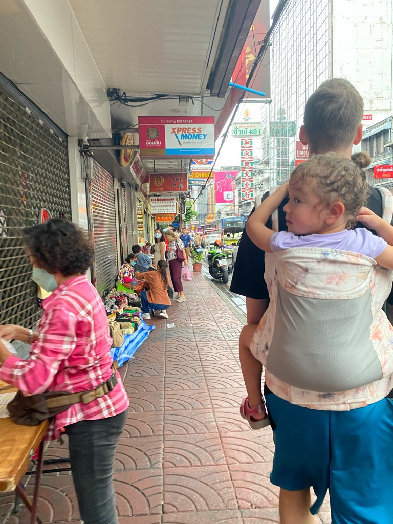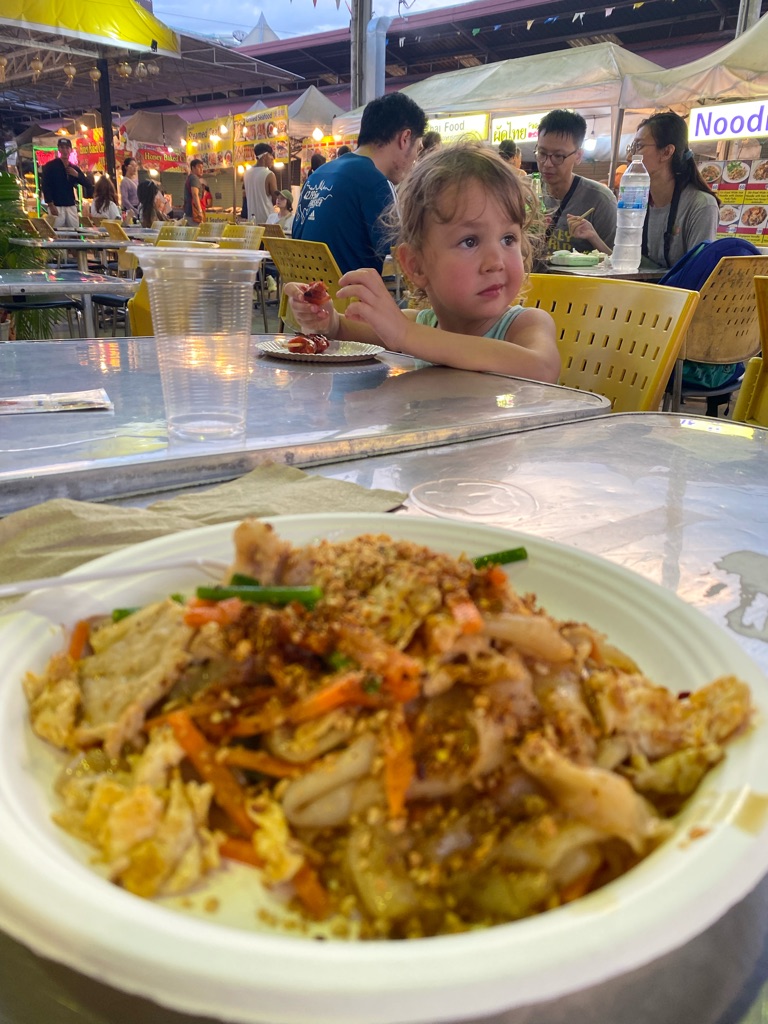 We came back home in the late afternoon and rested for a while. I couldn’t believe how well Lydia was doing with jet lag. After a bit of rest we went to Zaab Kak Kak restaurant for dinner. Lydia had a bbq chicken leg and Nick and I shared pad Thai and a crispy pork with basil over rice. It was all delicious and it was our first introduction to spice. It was quite spicy but we were told it was only a 2/10!