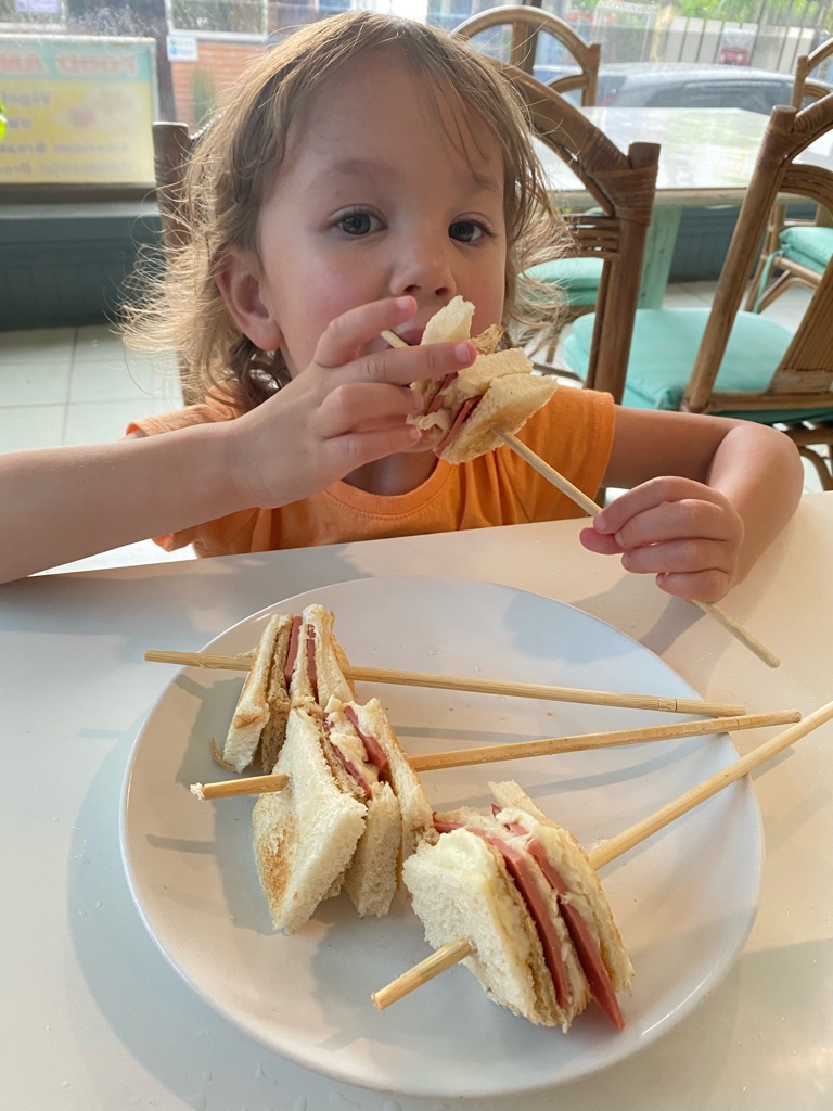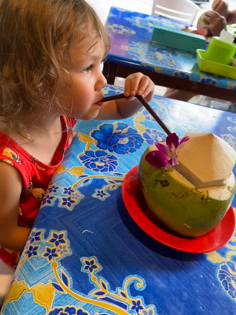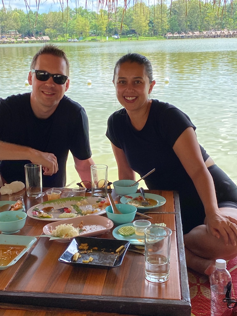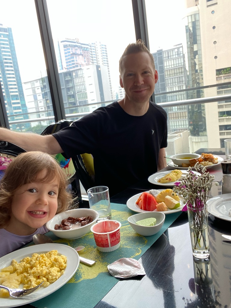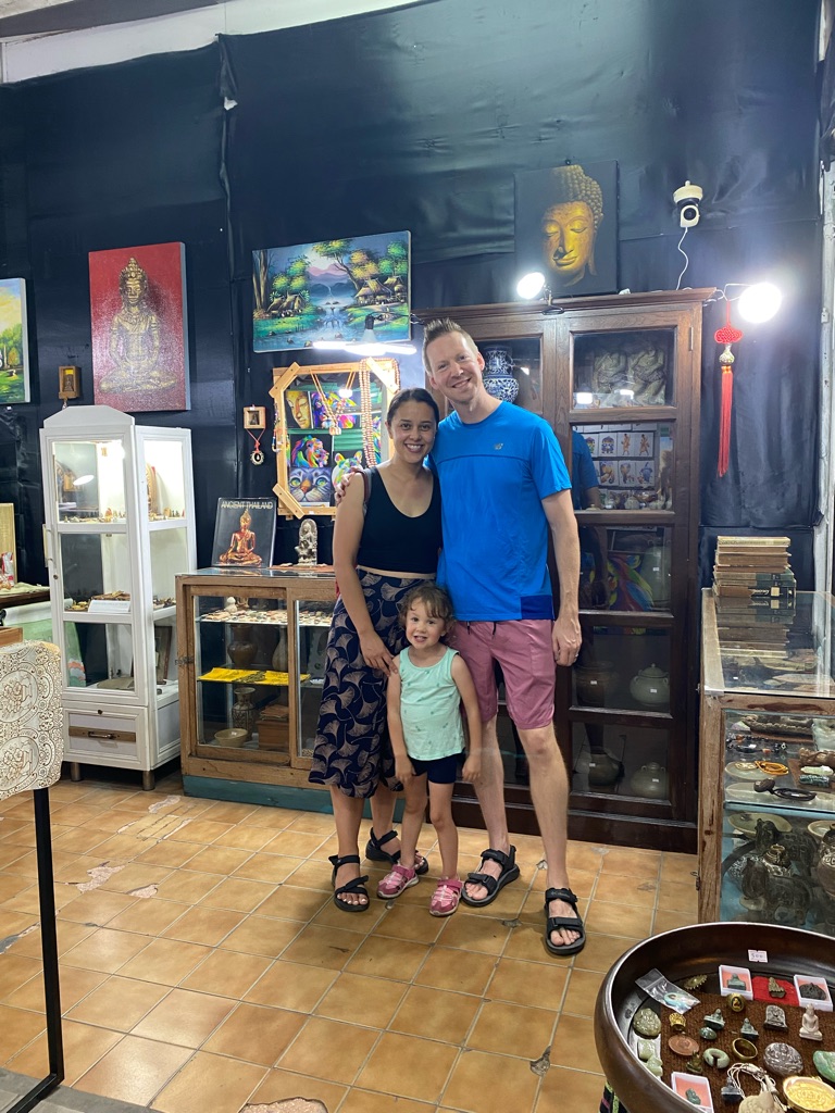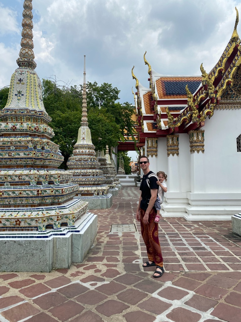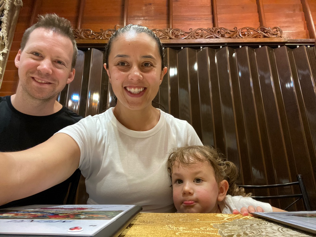 We came back home in the late afternoon and rested for a while. I couldn’t believe how well Lydia was doing with jet lag. After a bit of rest we went to Zaab Kak Kak restaurant for dinner. Lydia had a bbq chicken leg and Nick and I shared pad Thai and a crispy pork with basil over rice. It was all delicious and it was our first introduction to spice. It was quite spicy but we were told it was only a 2/10!
