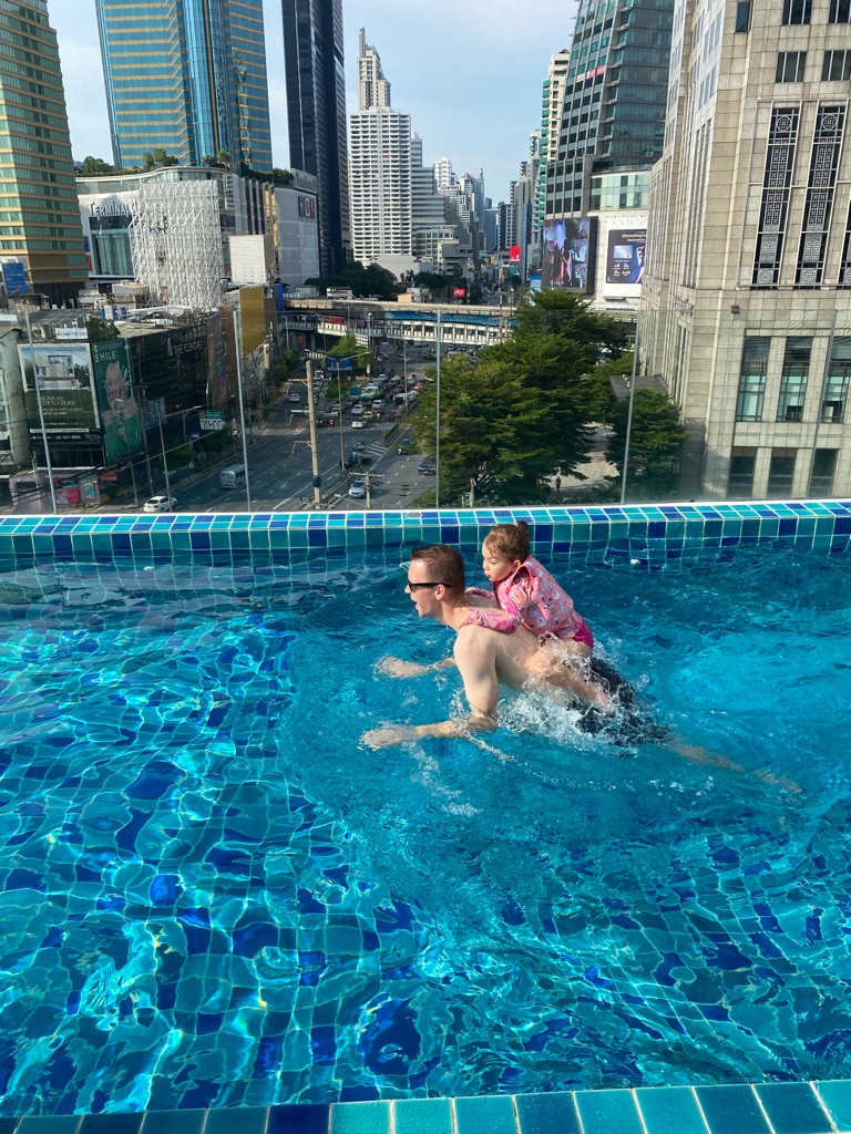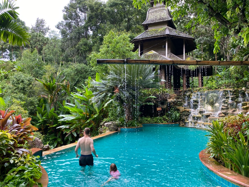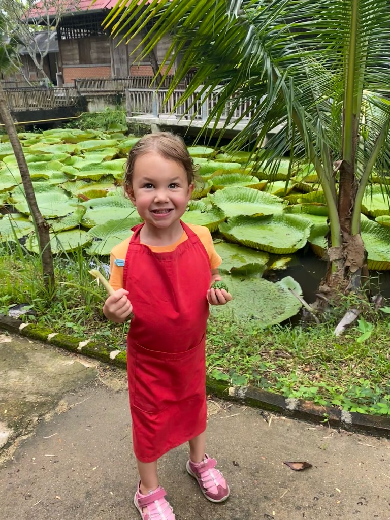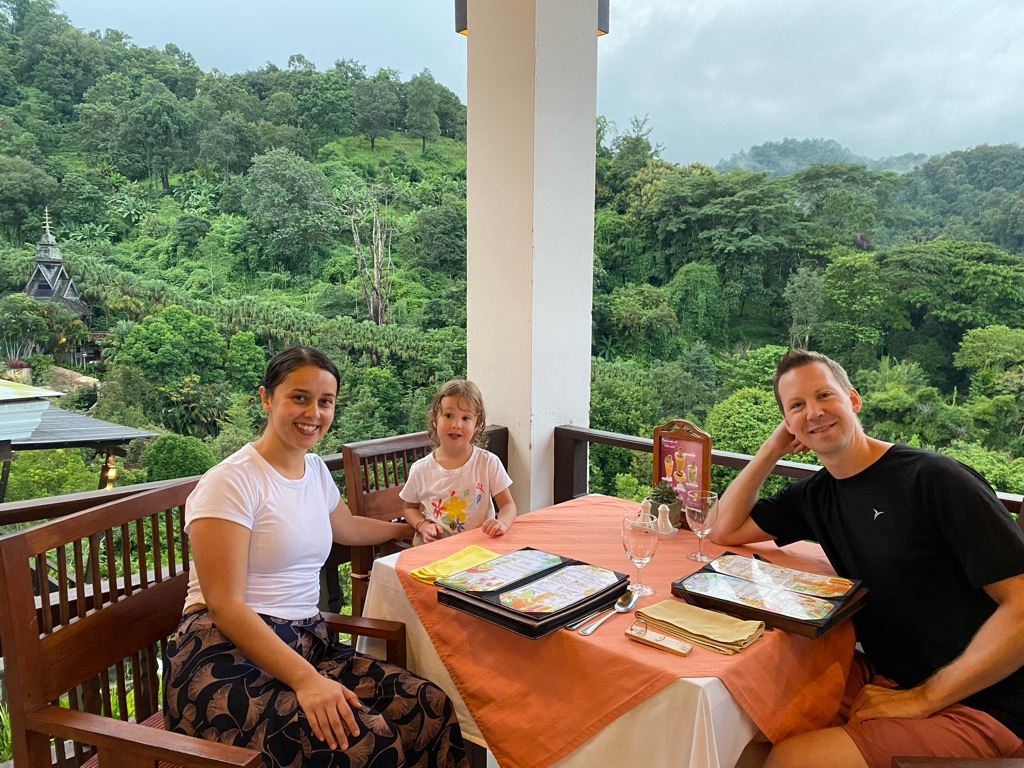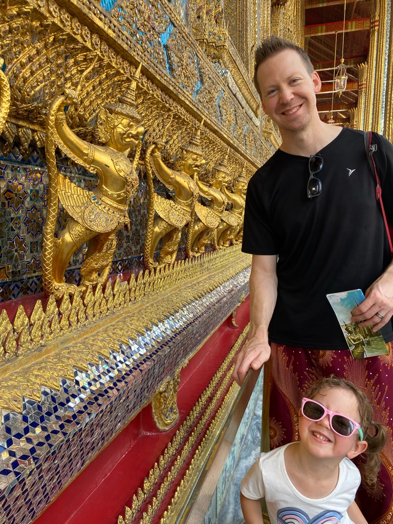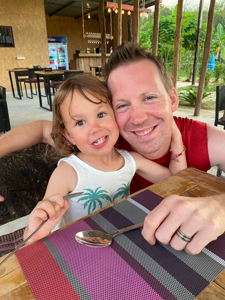We came back home in the late afternoon and rested for a while. I couldn’t believe how well Lydia was doing with jet lag. After a bit of rest we went to Zaab Kak Kak restaurant for dinner. Lydia had a bbq chicken leg and Nick and I shared pad Thai and a crispy pork with basil over rice. It was all delicious and it was our first introduction to spice. It was quite spicy but we were told it was only a 2/10!