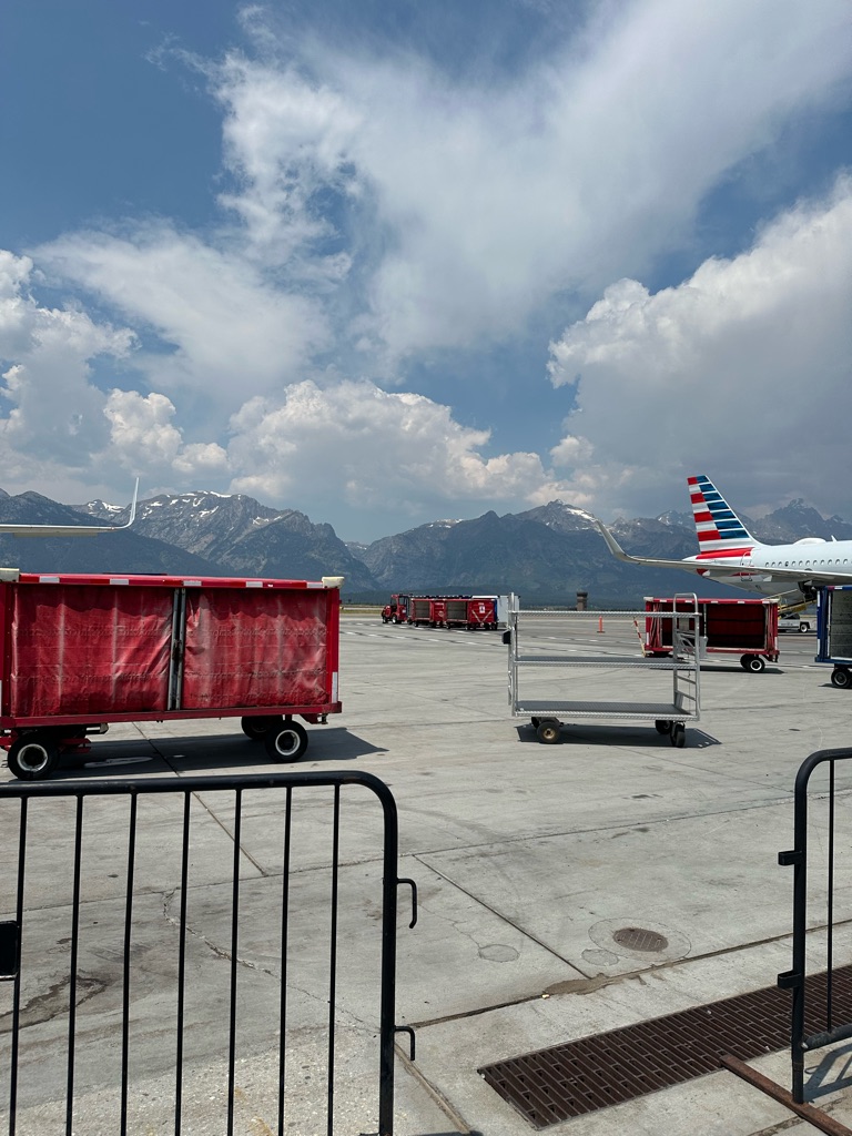 Once we landed our “gate” wasn’t ready. By gate I basically mean \240our parking spot. There are no jetways in Jackson Hole but man oh man…the beauty that you experience the second you walk off the plane is amazing!