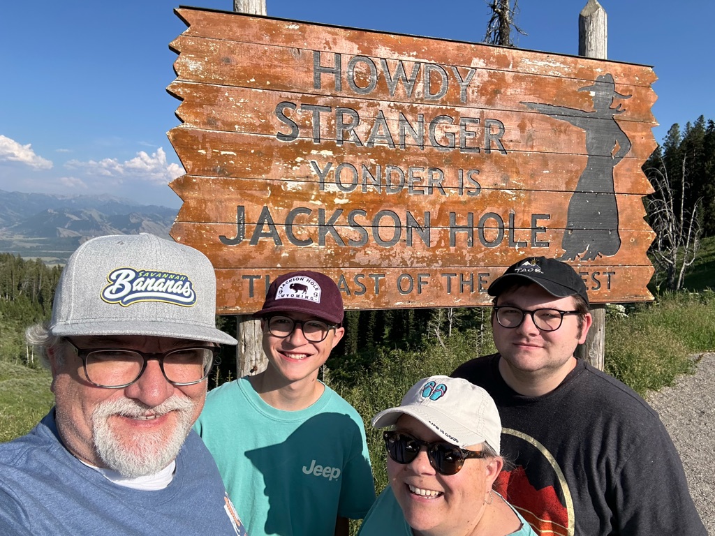 When we went into Grand Teton this evening the park ranger who was working \240the gate asked us where we were from. Dan said Dallas/Ft.Worth. Get this, she then asked do you know where Burleson is? I’m from there. We were stunned and said well that’s actually exactly where we live! We had fun chatting for a few minutes. She’s a professor in Colorado and works as a ranger here in the summer. Crazy huh???