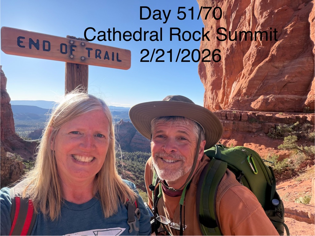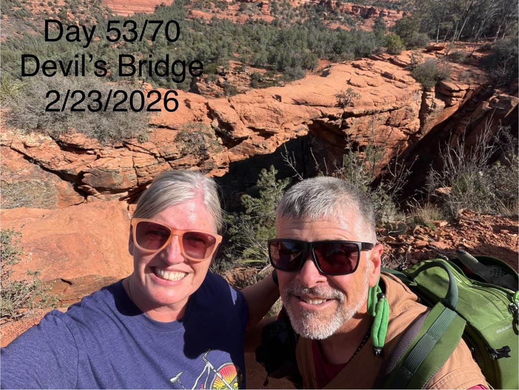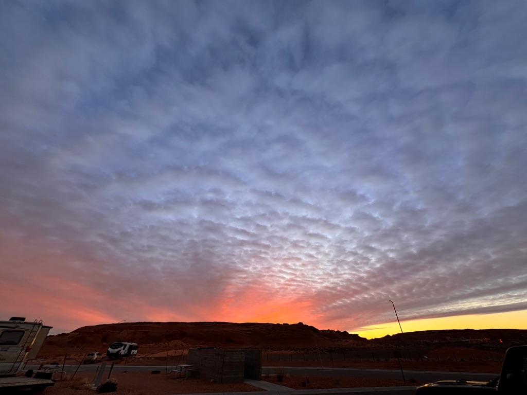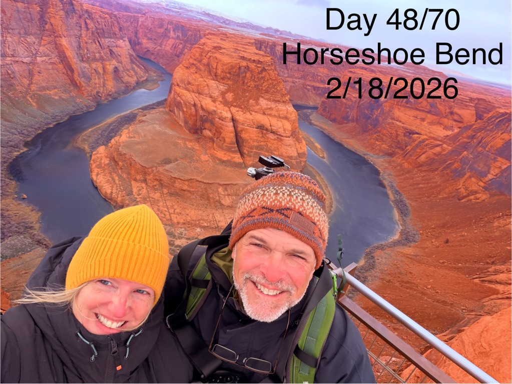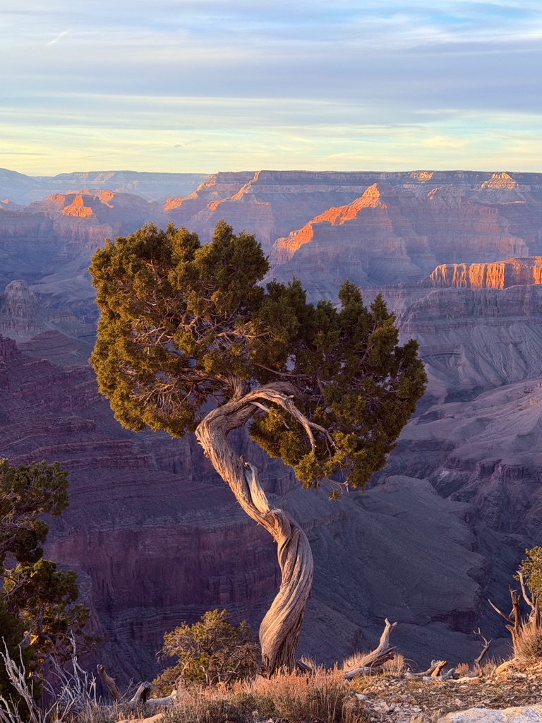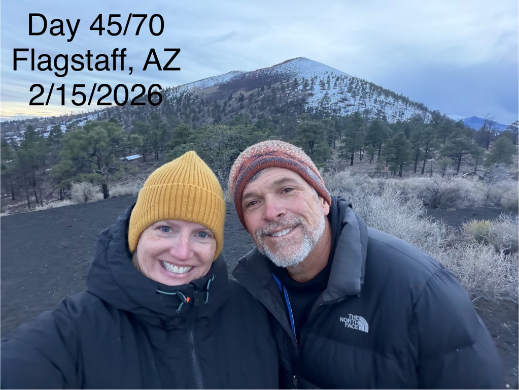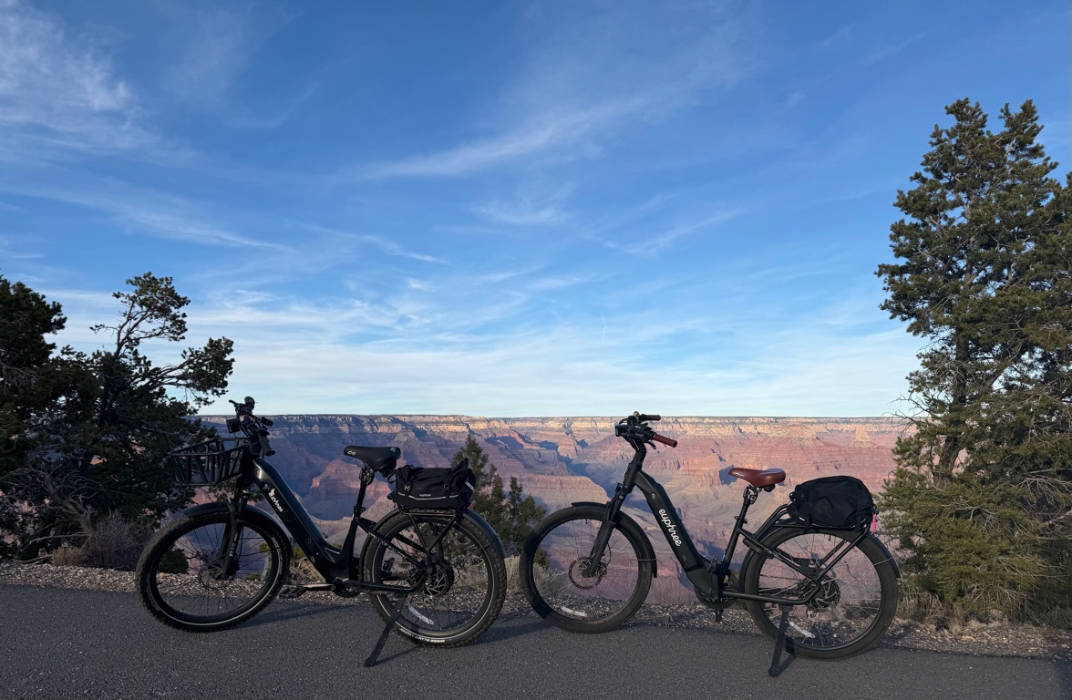 The alarm went off at 4:10AM so we could be out the camper door (in Williams, AZ) by 4:30AM, so we could arrive at the Grand Canyon at 5:30AM, so we could bike to our spot by 6:00AM for the 7:02AM Grand Canyon Sunrise, and it was soooo worth it!
