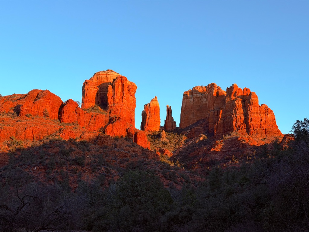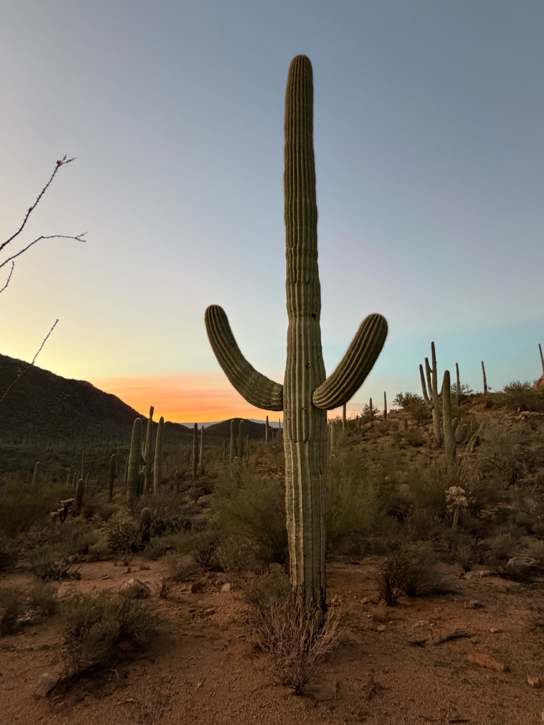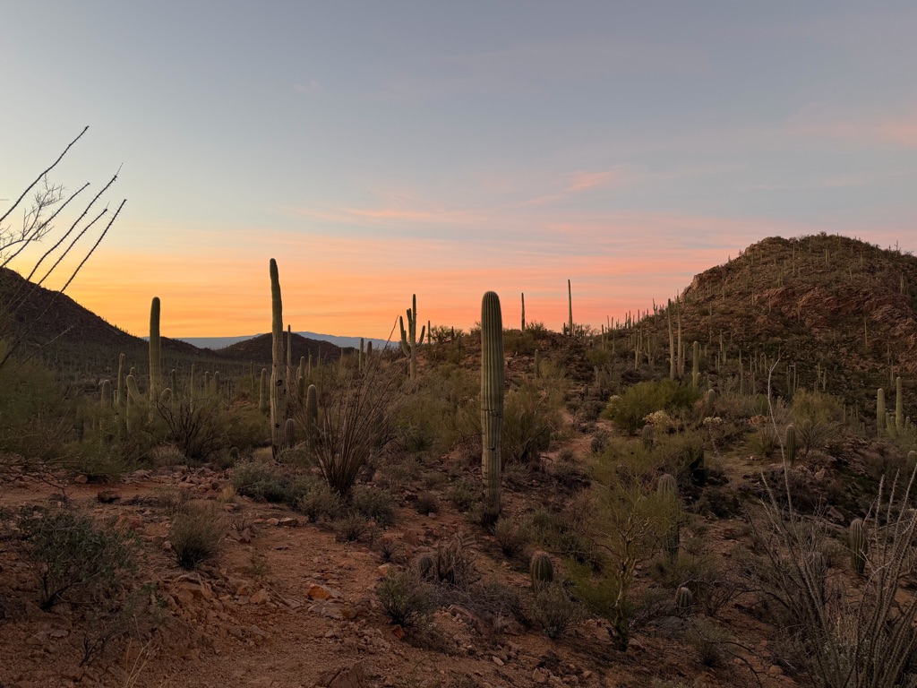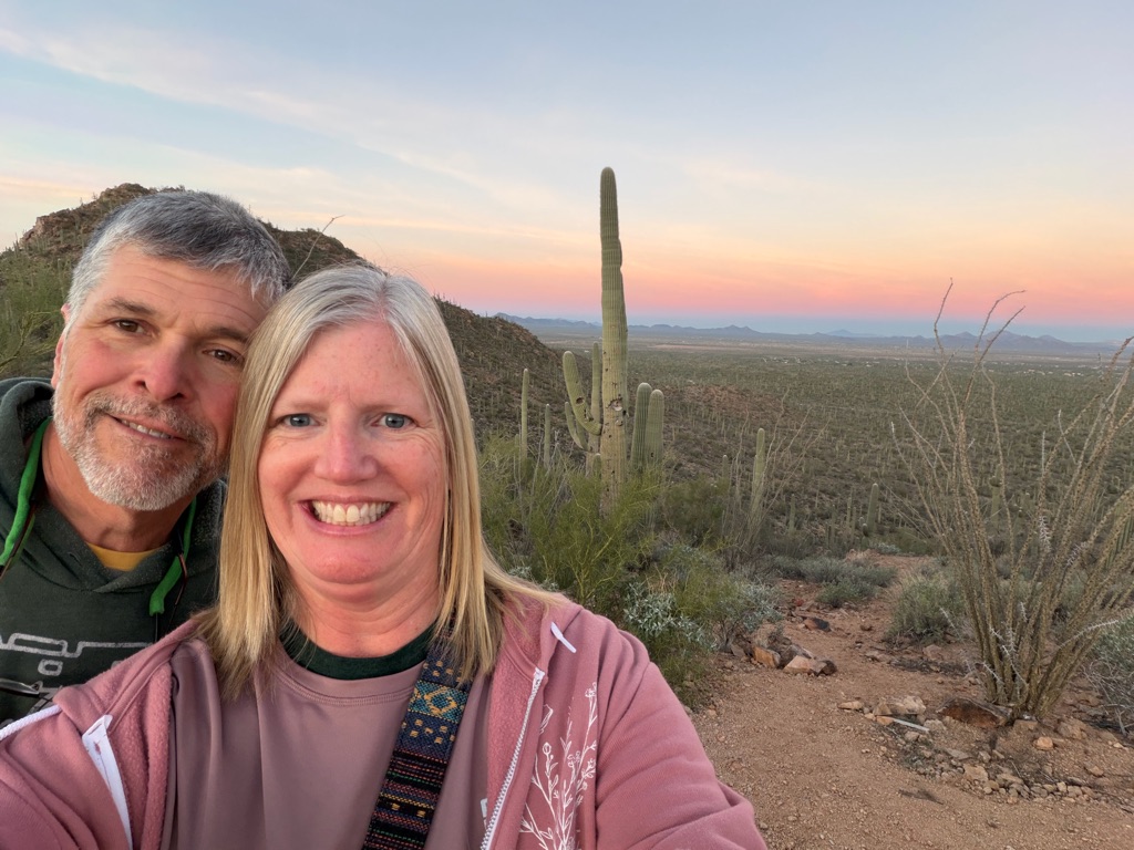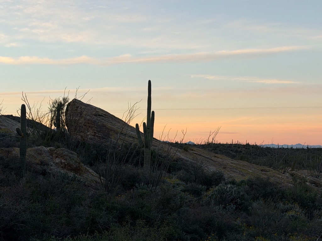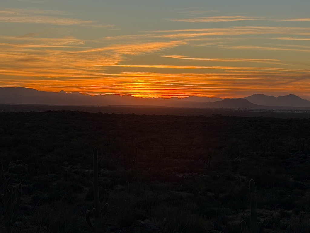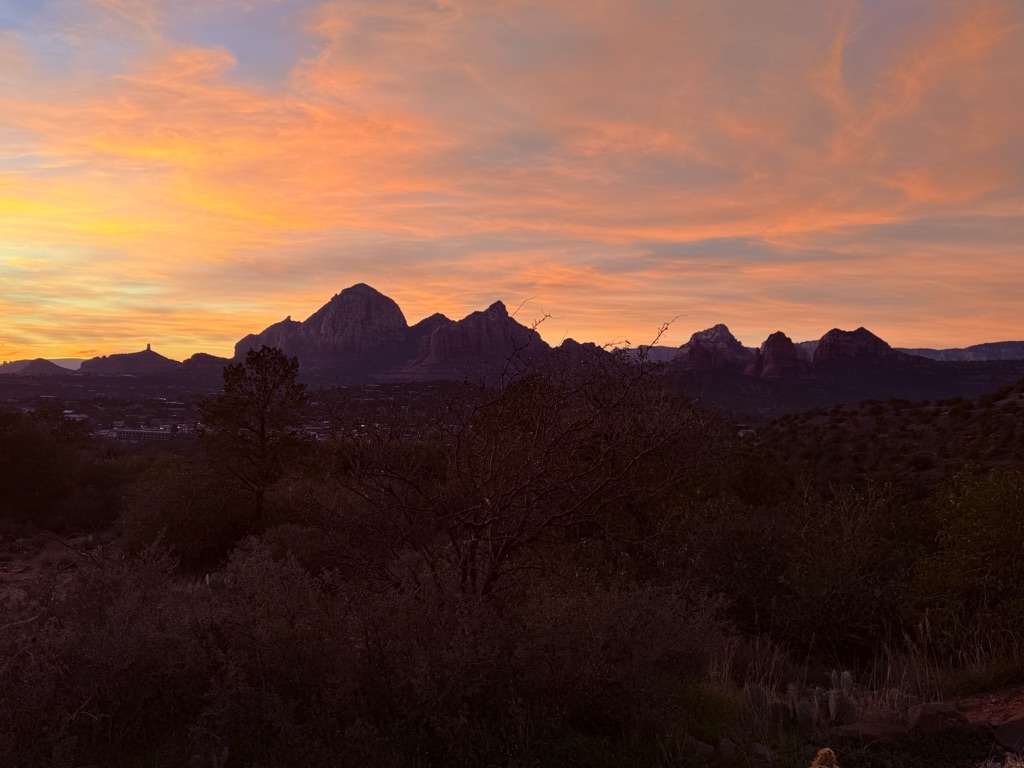 The alarm went off at 4:10AM so we could be out the camper door (in Williams, AZ) by 4:30AM, so we could arrive at the Grand Canyon at 5:30AM, so we could bike to our spot by 6:00AM for the 7:02AM Grand Canyon Sunrise, and it was soooo worth it!