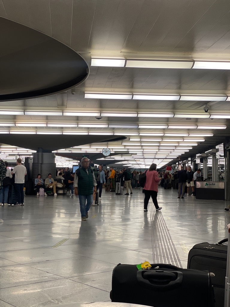 J’attend le train dans la gare d’Atocha. C’est la plus grande gare de Madrid. Direction Séville. 3h de train.