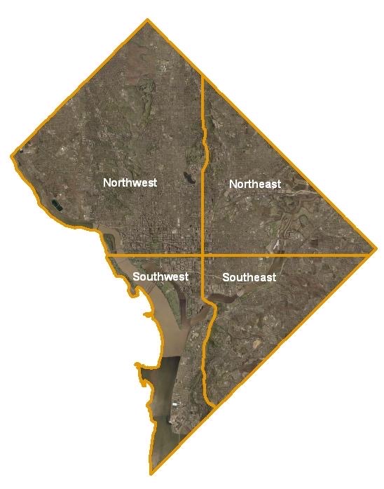 Quadratisch praktisch gut sind die Stadtgrenzen von DC, die Ecken des Quadrats zeigen in die jeweilige Himmelsrichtung und so sind auch die Bezirke benannt.