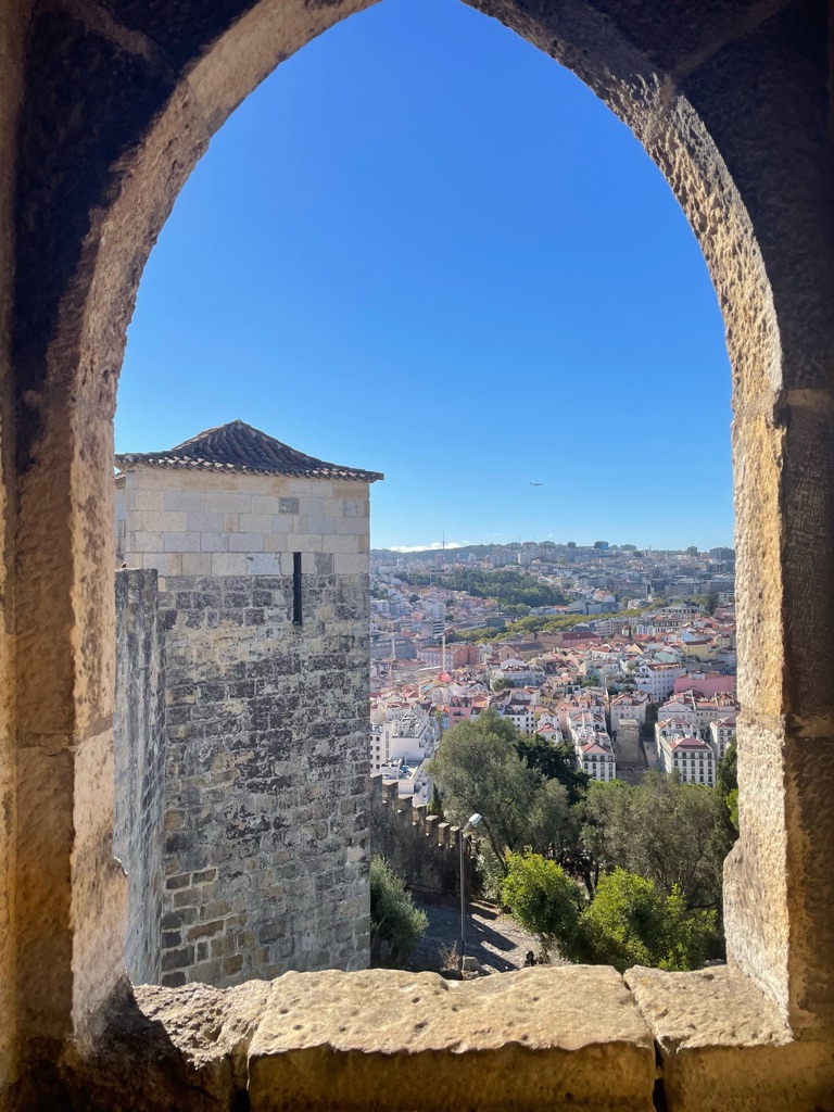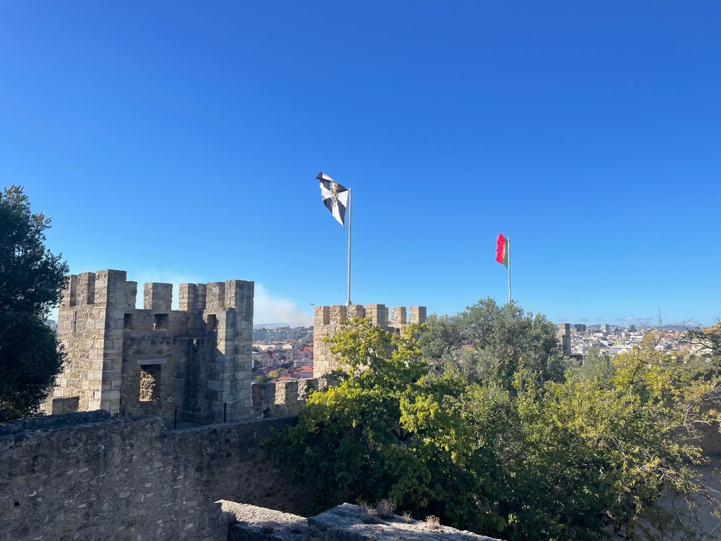 Cathédrale Santa Maria Major, et le fameux tramway typique de Lisbonne.