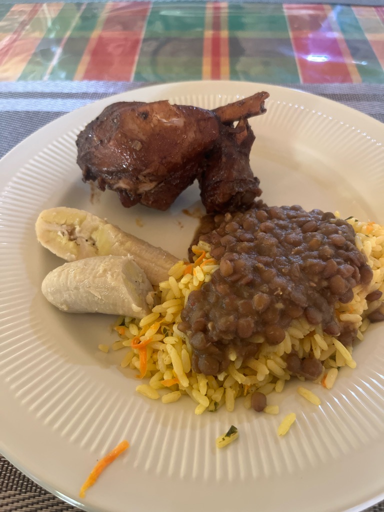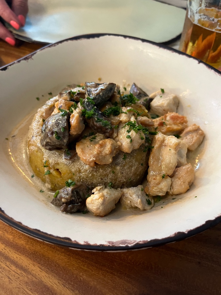We wanted to try Mufongo so we went down to a restaurant called Safon. It did not disappoint. We had it with grilled chicken and mushrooms.