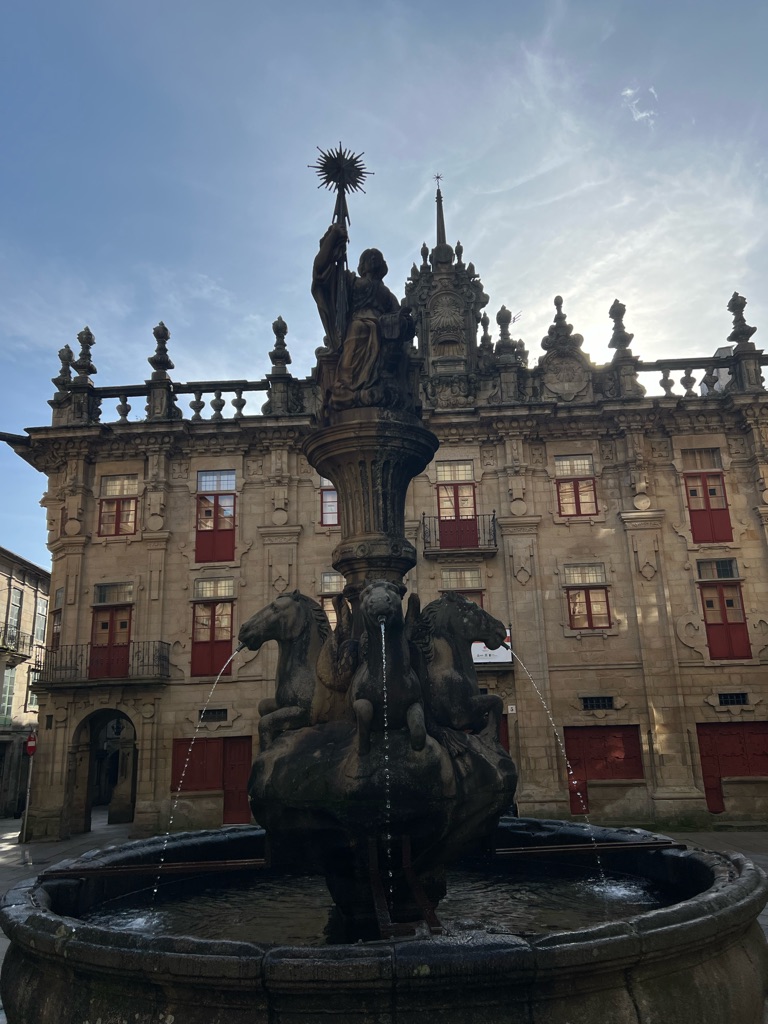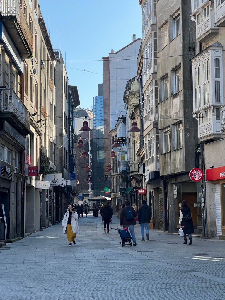 Arrived in Pontevedra early enough to sit in the square and sketch, giving my feet a rest. \240And…there are people here!!