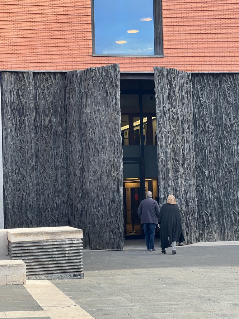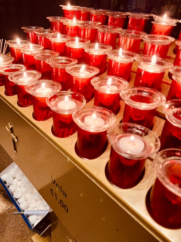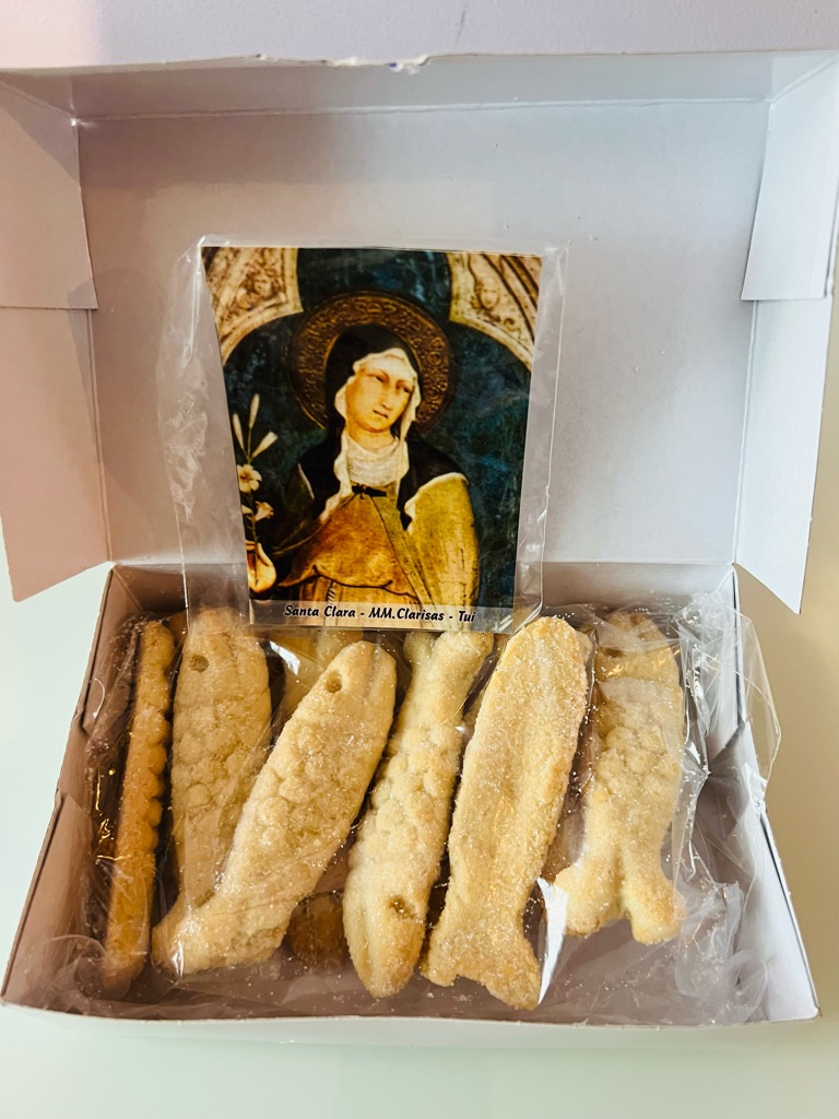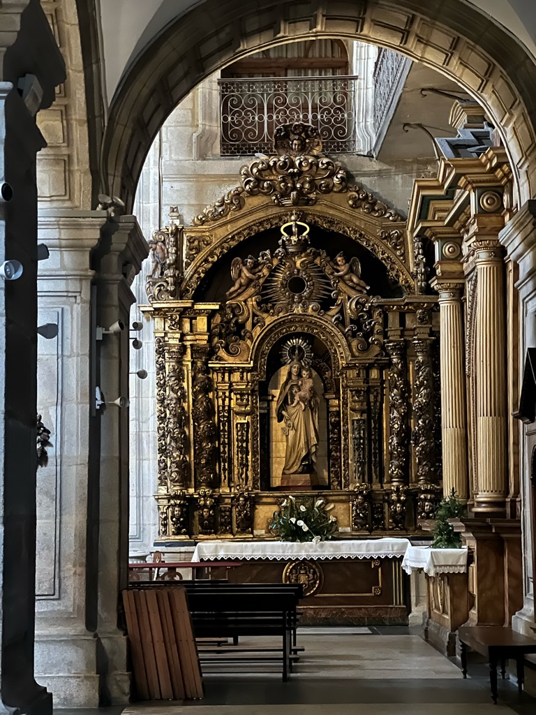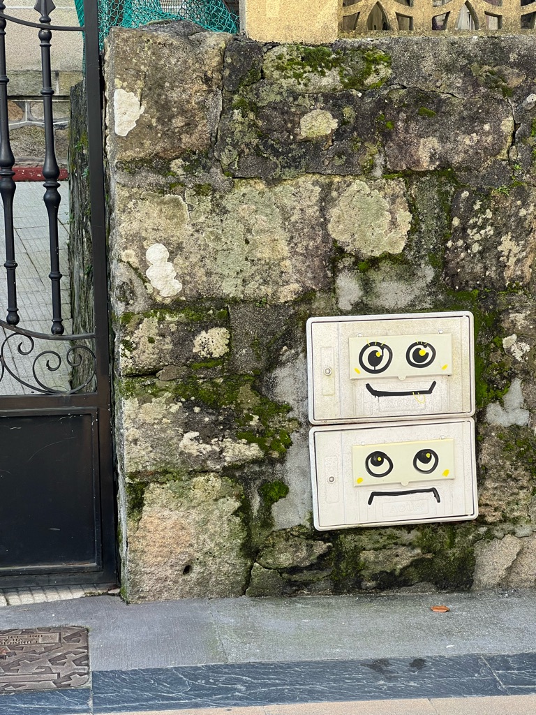 Real Panic set in this morning when I realized that there is not only anyone at the hotel doing this Camino thing, but likely no one in town & no one to check in with! The hotel proprietor escorts me out the door to the town square where he kind of nudges me in a direction. In shock, I wander in the rain for a bit trying not to freak out, I find a blog on line that seems promising, & ask a man on the street for directions. He speaks no English, but promptly tries to help, escorting me through the old town towards the needed street. He suddenly stops at a convent where one can speak to nuns through the wall (like confession).He ushers me in, waits with me, \240introduced me to an 80 year old nun behind the screen & explains that the nuns sell baked goods to raise money. I buy something, and tell her my story as we chat -birthday/husband/ doing the Camino solo-in Spanish & start to cry. She tells me to wait & because I can’t see her, I’m not sure if we are praying or what, so I stand still until she returns bringing me a prayer card sweetly assuring me to just remain tranquil & everything will be ok. 😊