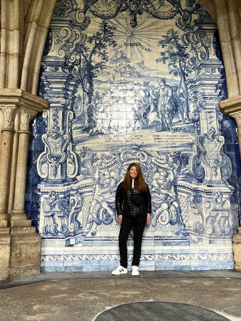 I landed in Porto, Portugal yesterday for a quick 24 hours before I make my way north to start the Camino de Santiago trek. \240Porto is Quirky Beauty. \240Amazing texture overload-tiles, bricks, stones, prints applied to every surface. I’m #obsessed. Red tile roofs abound. The hills could kill a person. I kept getting lost in the endless maze of steps, dead-ending and then right back up or down again. If I lived here I would have the butt of a much younger person. There were clothes drying on clotheslines at every turn which i found charming. I loved my hotel. Drank Port (white-who knew this was a thing?) ate the Pastel de Nat. \240And went to The Most Beautiful Book Store in The World. (you need reservations). Scott Simpson was with me in spirit appreciating the ever present blue & white color story as that was his jam. Great kick-off!