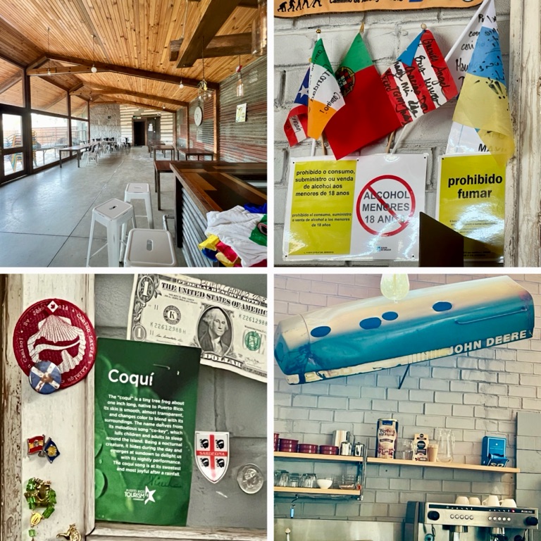 Today after having water and trail mix from my pack for lunch at 2:00, \240a man walking by asked if I was a pilgrim. \240I said yes after I figured out the translation. ‘Alone?’ ‘Yes-Can you tell me where I can find a cafe that is open?’ \240‘That would be mine. Except that it’s closed. Until March. But walk with me and I’ll open and make you a coffee.’ We walk exchanging stories. His bar is right on the Camino, he opens it and in we go in. (I hope he doesn’t plan to kill me as my mom will be pissed) but we sit and chat for almost 2 hours. Family/ politics/ travel/outlooks on life. Showed him Sean’s pics. Kate & Archie’s too. We lost our dads 1 year apart. He showed me trinkets left from travelers from PR & the John Deer tractor hanging on the wall that used to be his grandfathers. Sometimes we aren’t as far away from home as we think.