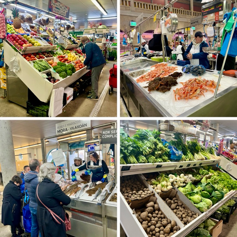Kicked off the day with a visit to the big market in Pontevedra. Beautiful fresh fruits and vegetables and loads of seafood. Loved seeing people shopping and vendors talking about their product. Much of the seafood was so fresh it was still moving!!