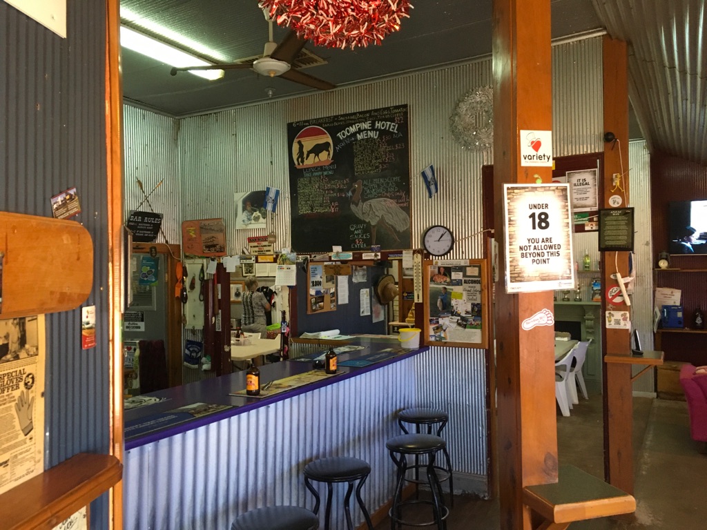 And, finally, to Toompine (entwined.redeemed.worktable) and its pub which is often referred to ‘a pub without a town’. We enjoyed lunch there before returning to Quilpie. The ‘town’ was established in the late 1800’s but after the great drought of 1900, the town was devastated and, although the drought broke in 1902, it was deserted by its inhabitants and the hotel is all that remains. However, the building was burnt down in 1893 and the present building was erected in 1895.