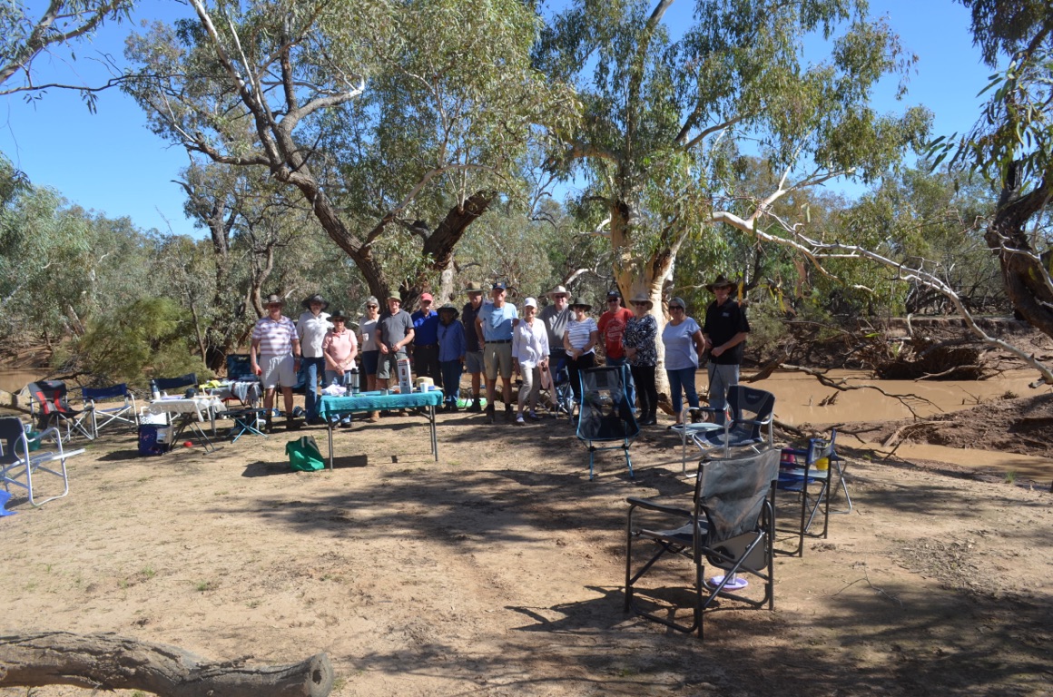 The plan was just a plan! Morning tea was most enjoyable as most of the women had produced scones, cream and jam, cake, pikelets and tea and coffee. However, we learnt that one of the stationhands had dropped a number of pots in the river several days previously and, today, had found only one yabbie. So we decided not to waste our time. There was a dual purpose in netting yabbies. The first was to contribute to a planned 36 which were to be used in a yabbie racing competition during the weekend - the idea being that a group of people would buy a yabbie and then everyone would place bets on a number of races, culminating in a grand final, the winner of which would win a cash prize. All proceeds from the festival, including the yabbie competition, would go to a nominated charity. The second reason for \240stating yabbies was that one of the women in our group makes delicious yabbie laksa and it was hoped that we’d all catch enough to produce a meal for the group. Unfortunately, it was not to be.