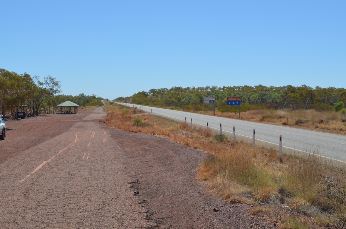 About 100 km west of Mt Isa there’s another memorial (process.unnerving.string) this time to those who established a gravel road from Mt Isa to Camooweal and finally link up with the north/south road at Tennant Creek. This was required for strategic needs during WWII so as to move military traffic - in late 1941 there were 1,000 Australian and American vehicles a day using the road. An all-out effort was made the following year to bitumise the road. However, the road was replaced in 1994.