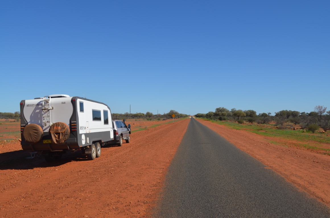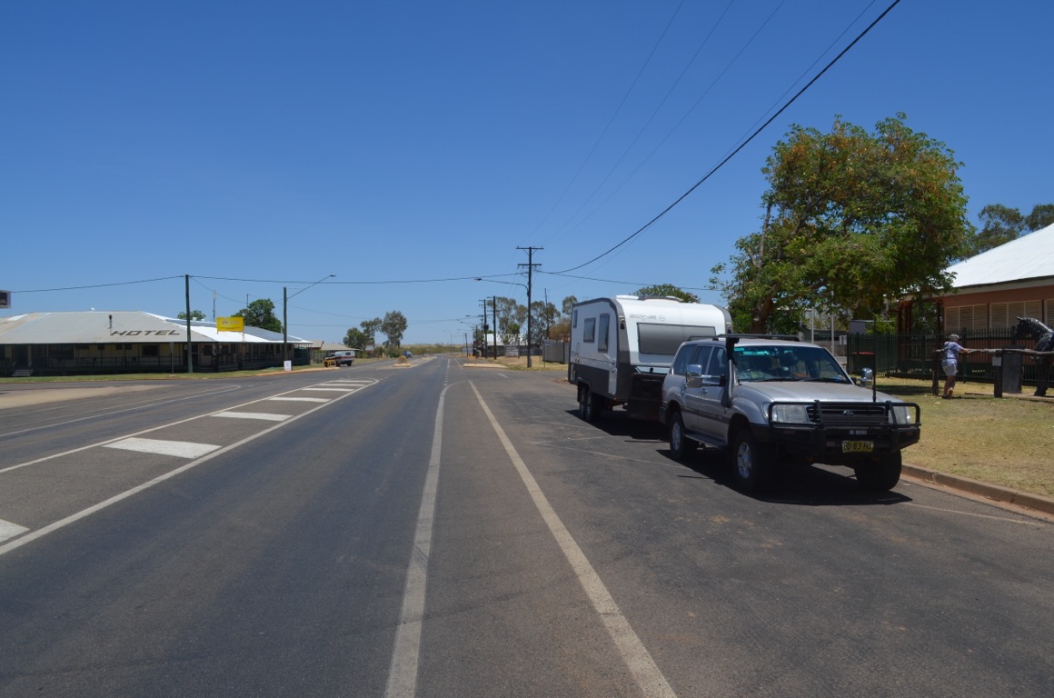 The road south from Longreach towards Windorah, although sealed, is single track for a greater part of the trip through to Jundah so it was slow progress, given the traffic.